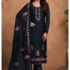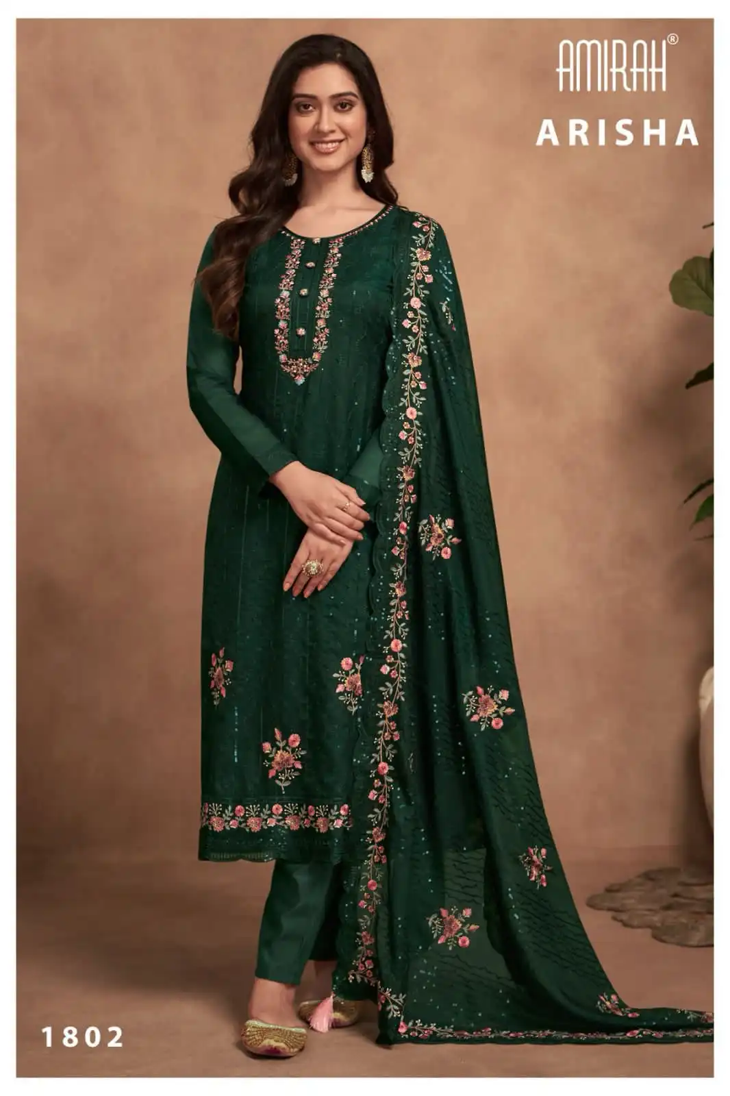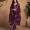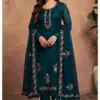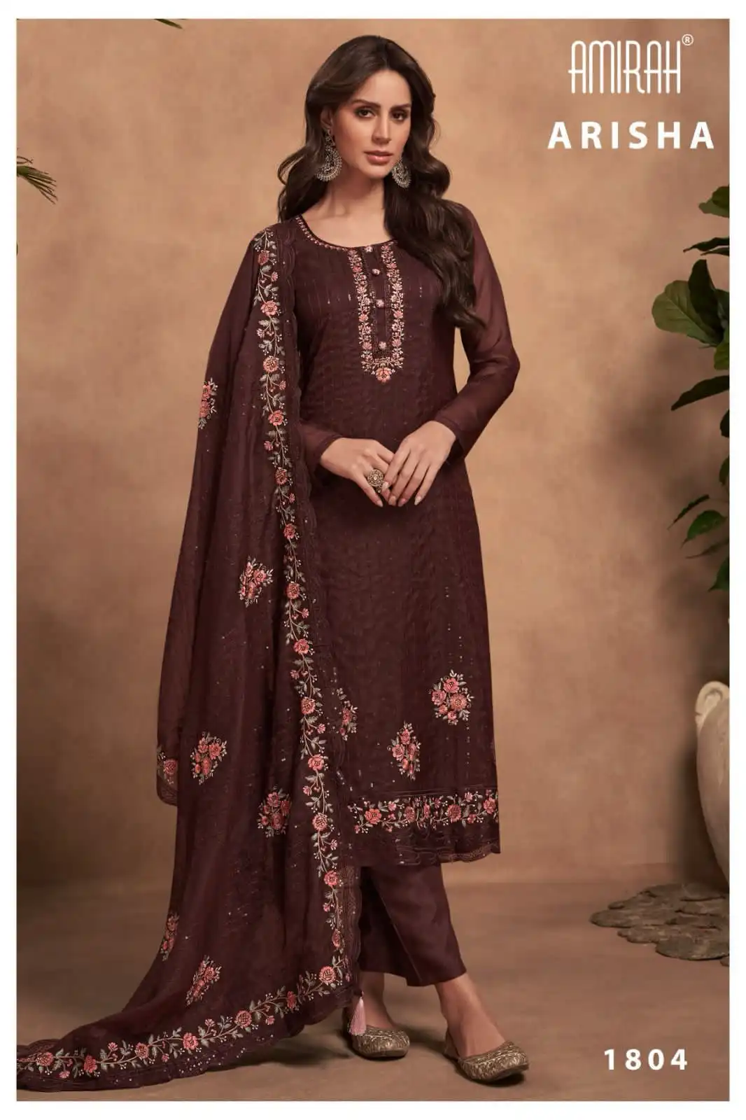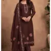 Top: Elevate your ethnic style with this crystal organza suit set featuring a top adorned with intricate embroidery work. The crystal organza fabric adds a touch of sheer elegance to the ensemble, making it a perfect choice for special occasions and celebrations.