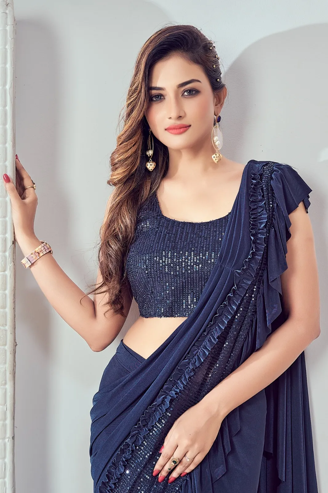 | Saree | Imported (Lycra) Fabric With Sequin Work Border |