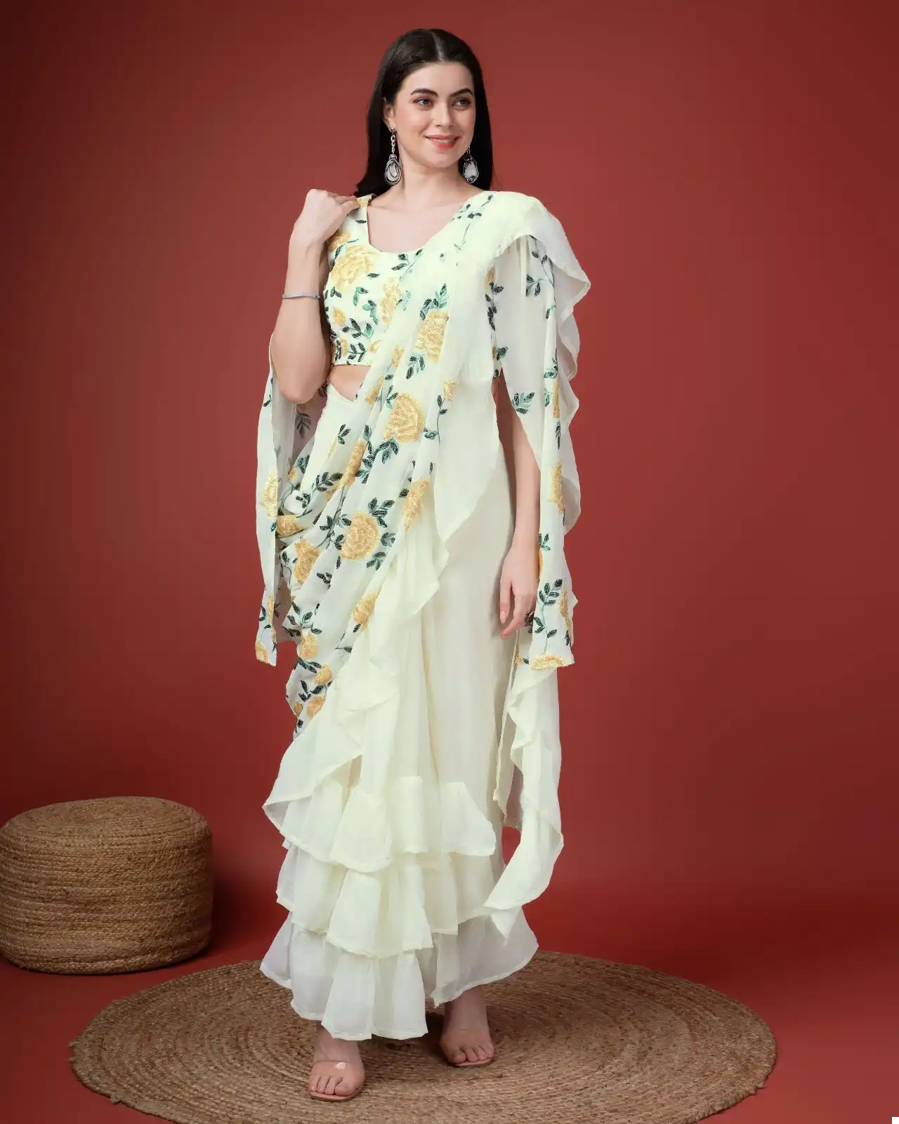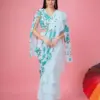 Exclusive Flower Pattern Emroidres Sequins Work With Fogg Georgette Fabric