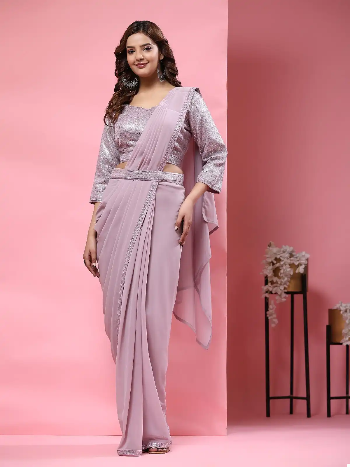 - Saree: Fancy Pure Georgette Fabric with Sequin Embroidery Border