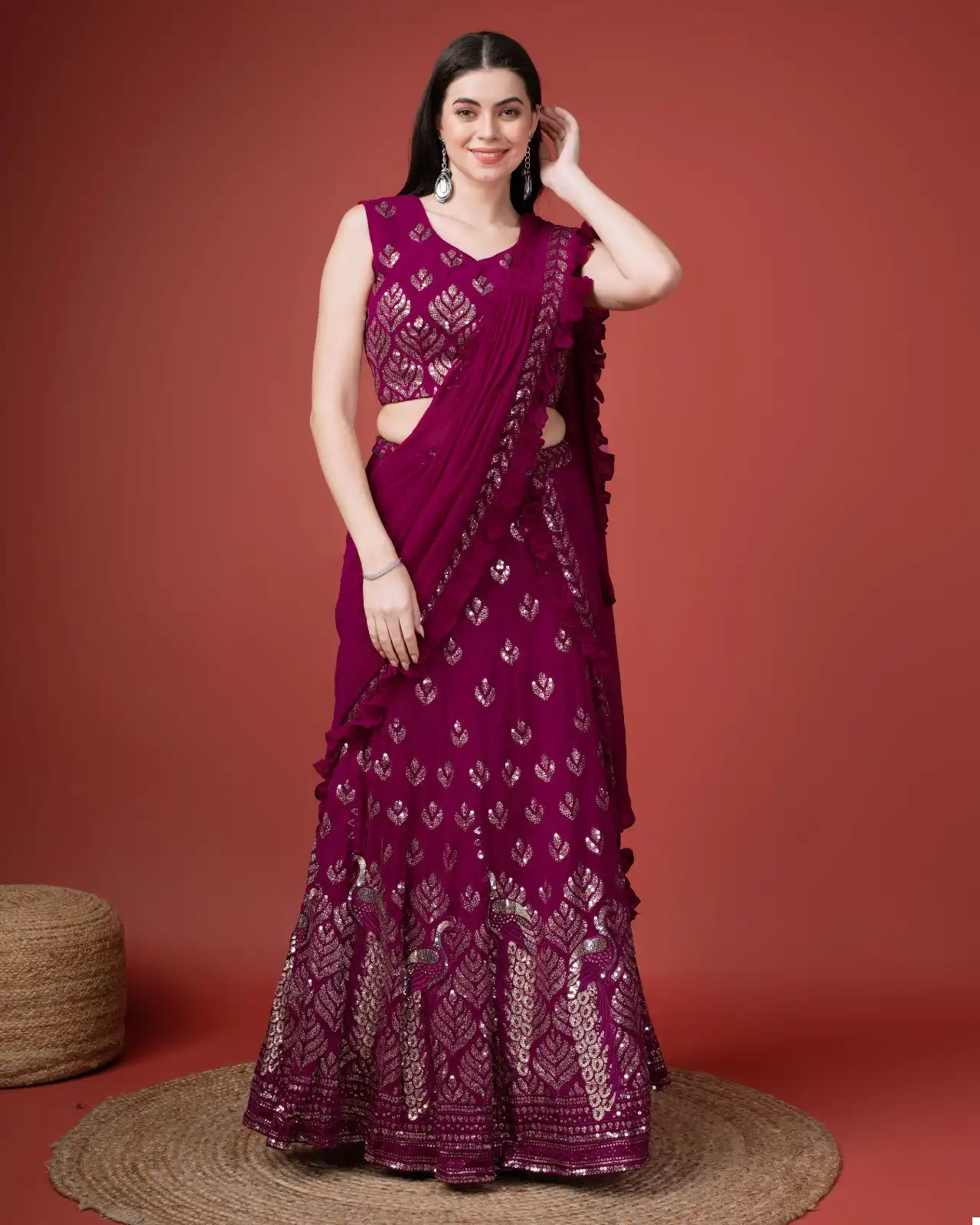 Keywords: Peacock Embroidery Lehenga, Imported Georgette Blouse, Traditional Ethnic Wear, Luxurious Lehenga Choli, Festive Outfit, Elegant Women’s Attire, Customizable Size, Diverse Color Options, Fashion Statement