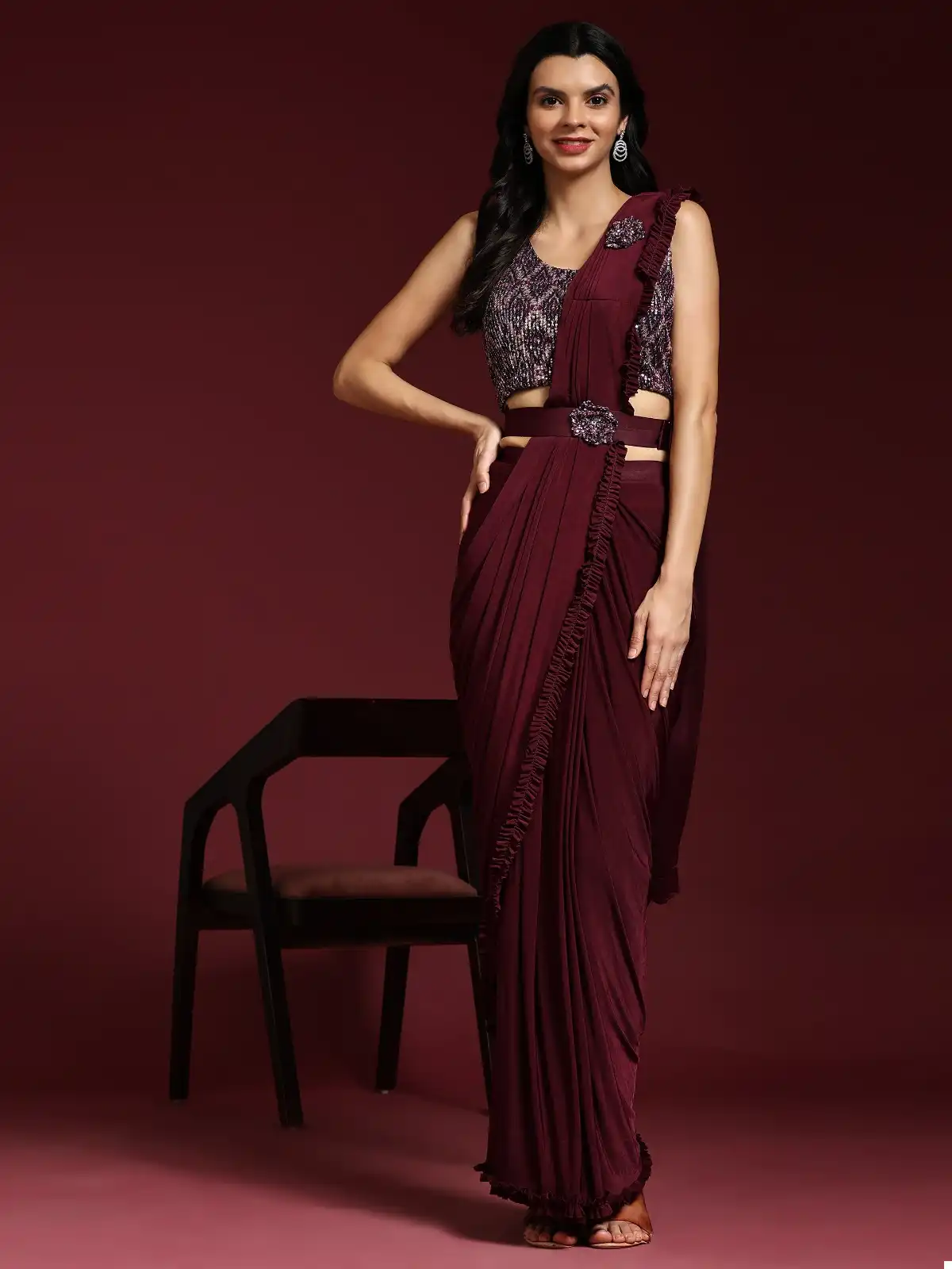 - Saree: Imported Fabric with Belt and Border In Little Frill
