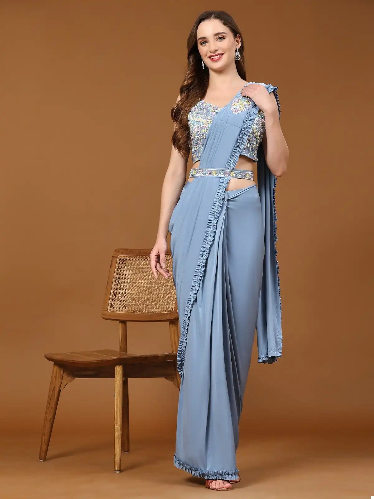 - Saree: Imported Fabric and Frilled Border with Handwork Belt
