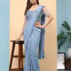 - The availability indicates that the saree and blouse are available for individual selection, and there are three color options to choose from.