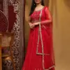 - Gown: Pure Georgette Fabric, Designer Hand Embellished Neck and Belt with Handwork
