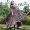 | Gown | Printed Cotton with Kutchi Gamthi Work and Kodi Lace |
