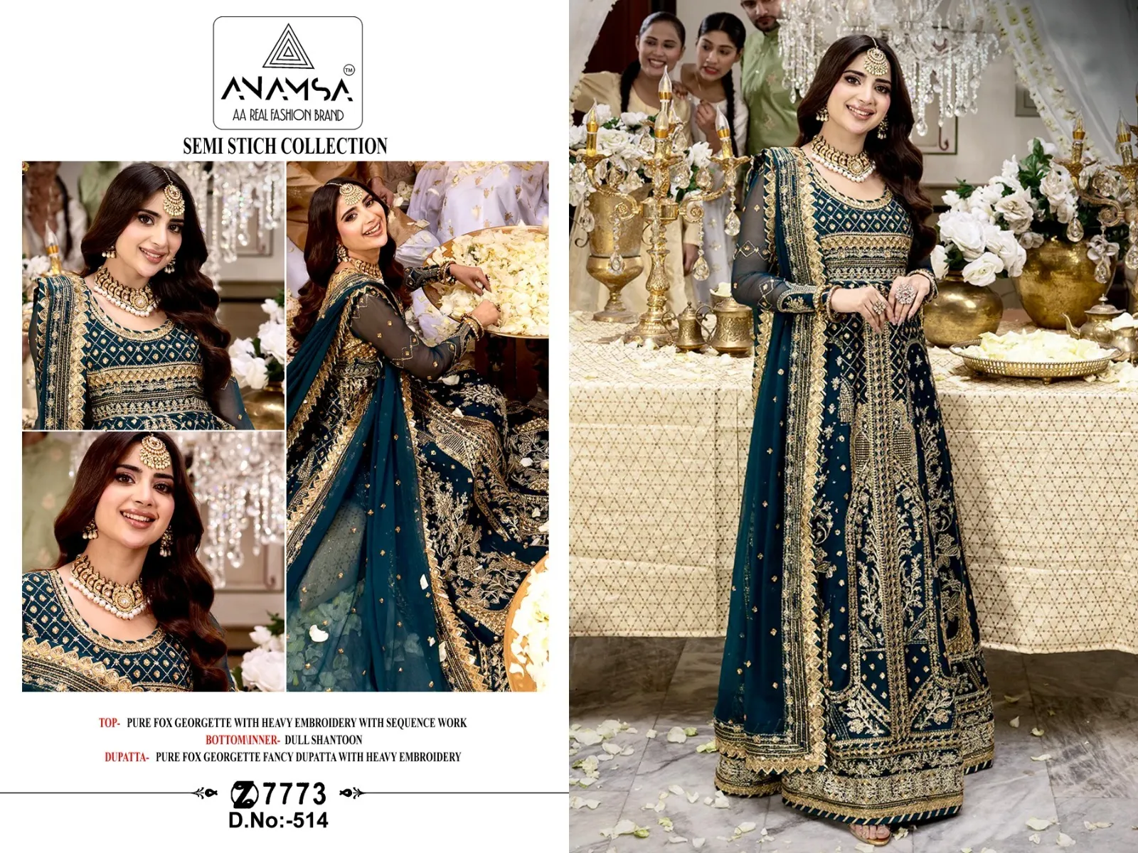 Anamsa 514 Pure Faux Georgette Wholesale Pakistani Salwar Suit Collection