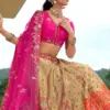 - The beautiful blend of vibrant colours and detailed craftsmanship adds a festive charm, making it an ideal choice for bridal wear, weddings, and ceremonial functions. Paired with a perfectly coordinated choli and a matching dupatta, this lehenga choli set offers a complete and graceful traditional look.