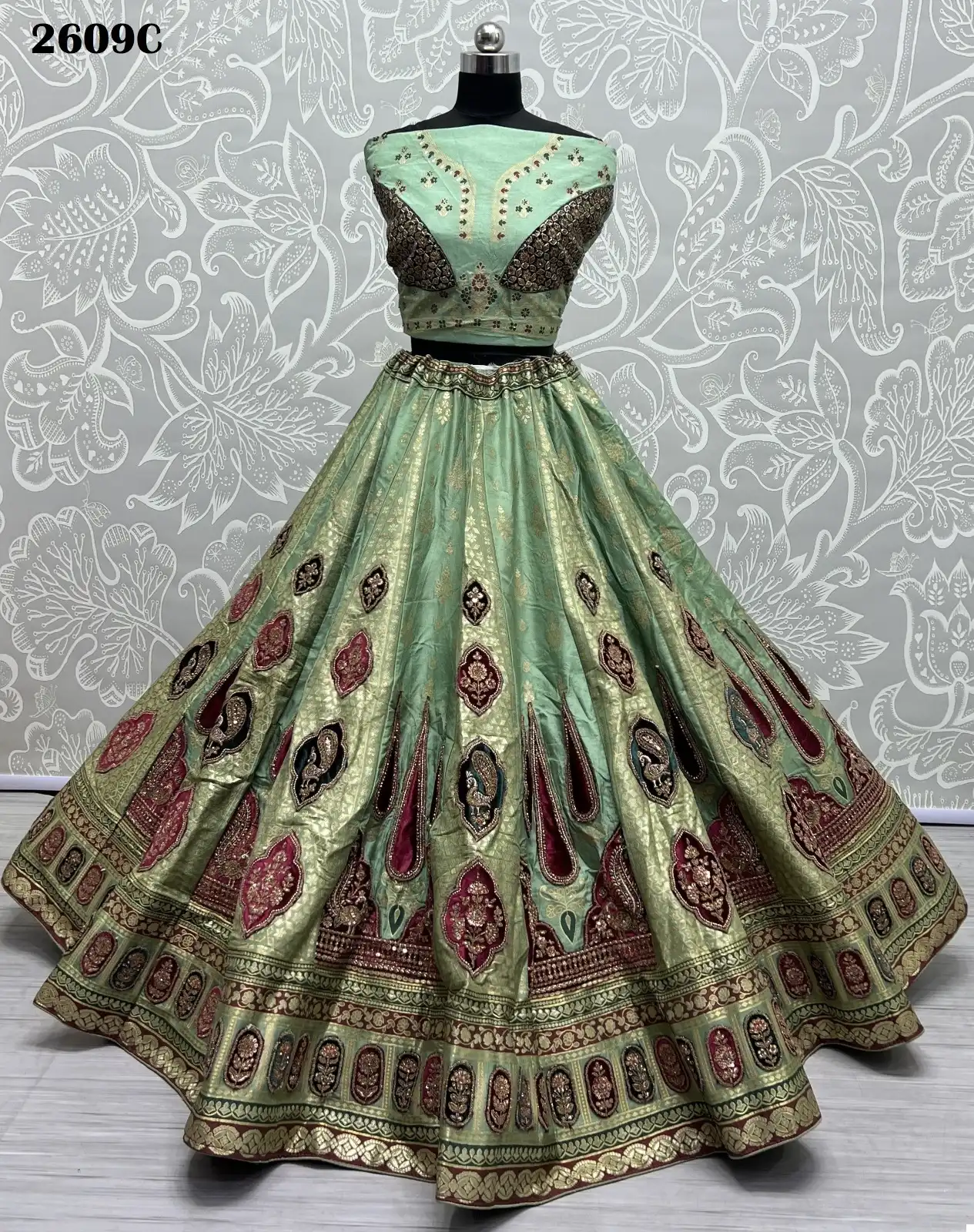 Anjani Art 2609A To 2609C Banarasi Silk Wholesale Lehenga Catalog
