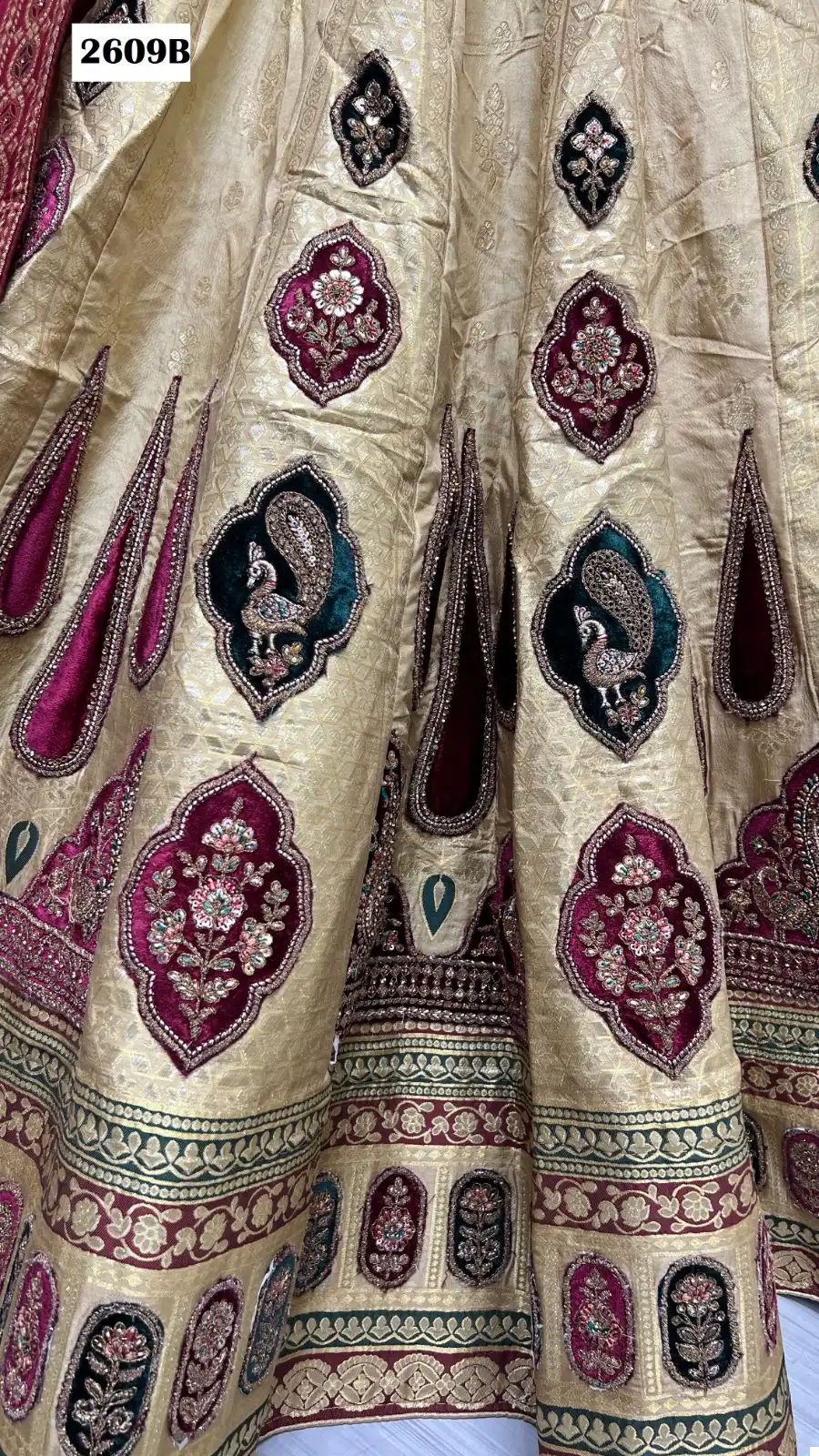 Banarasi Silk With Velvet Patch Work, Fancy Embroidered, Weving Silk And Meenakari Hand Diamond, Stitching – Standard Cancan And Canvas Attached |