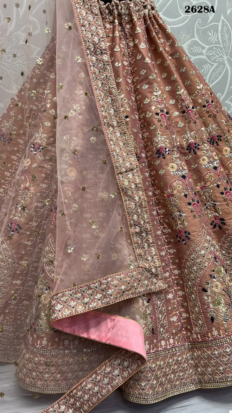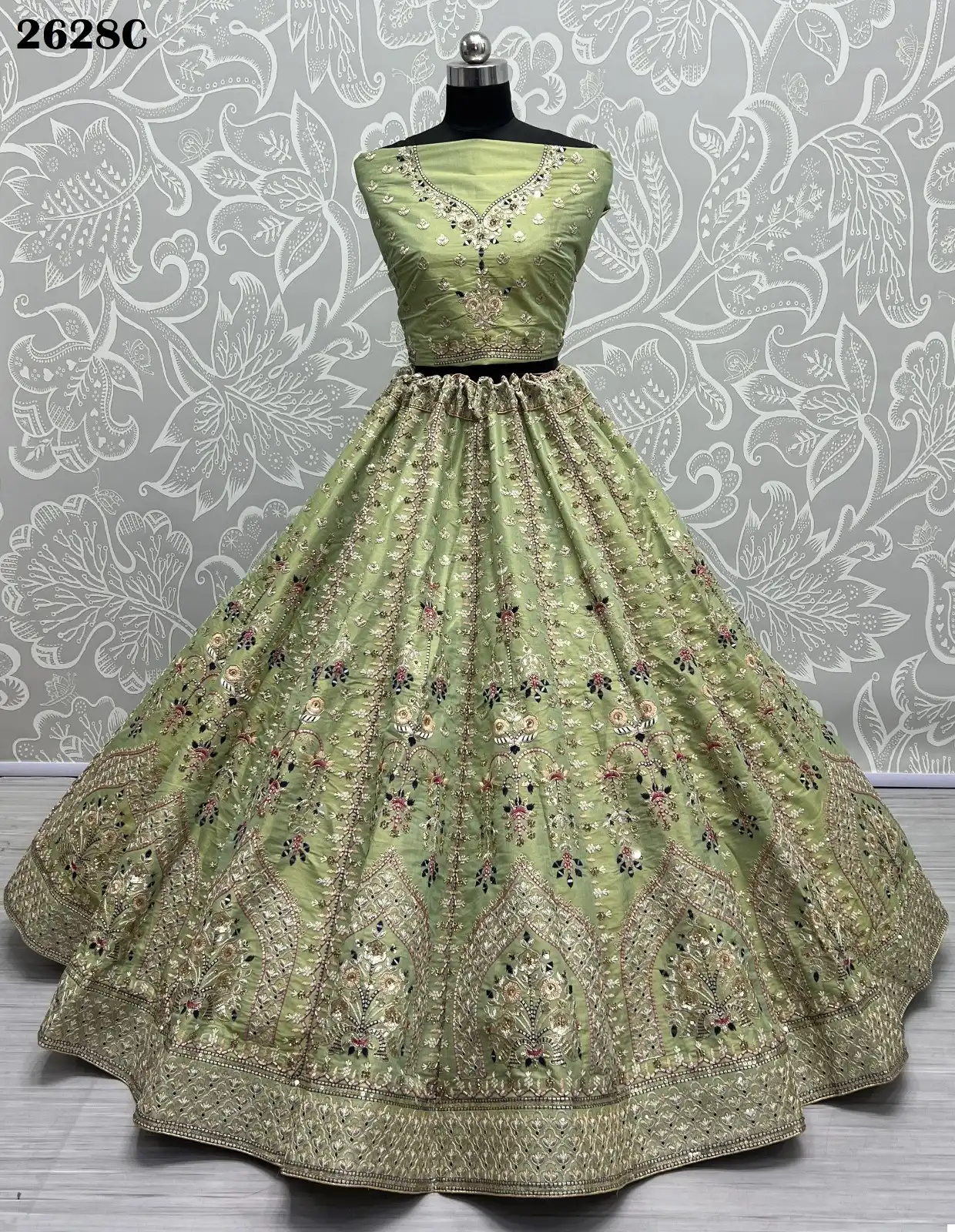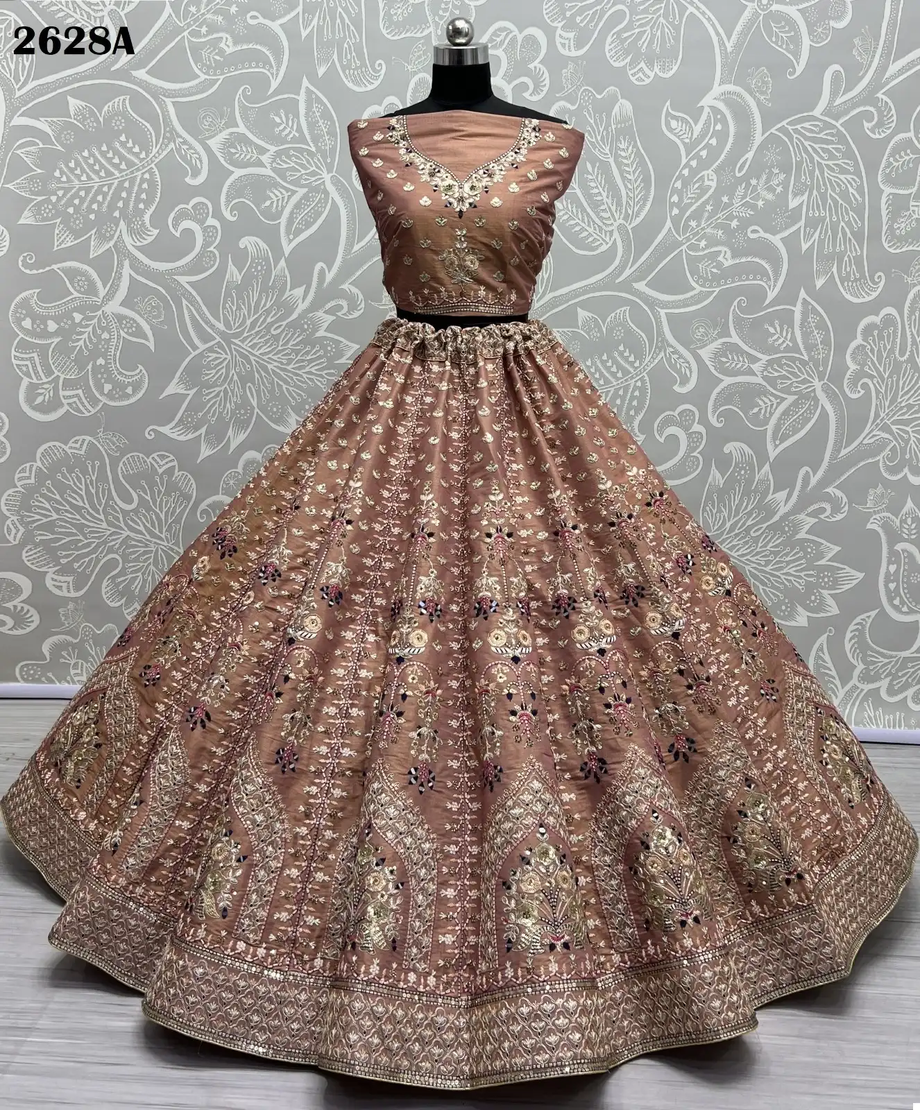 Introducing the Anjani Art 2628 Dola Silk Wholesale Lehenga Choli Catalog—a celebration of grace and sophistication in ethnic couture. Crafted from luxurious Dola Silk, this wholesale collection is designed for women who seek timeless elegance with a modern twist.