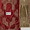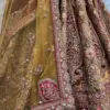 Dupatta: The set includes a dupatta made from softnet, accented with velvet. It features four-side work and butti, complementing the lavish design of the lehenga and blouse. The dupatta’s light fabric contrasts beautifully with the velvet, adding a layer of sophistication.