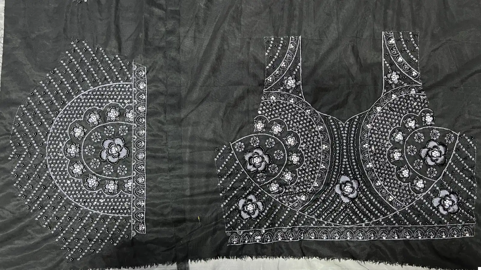Handcrafted Work: The hand motif work, hand sequins work, German thread work, and fancy detailed embroidery on this ensemble are a testament to the craftsmanship of artisans who have poured their skill and creativity into every stitch.