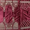 - Lehenga: The lehenga features intricate sequin work, dori, zari work, and thread embroidery, exuding elegance and sophistication. Crafted from sumptuous velvet fabric, it offers a regal touch and graceful drape, ensuring you look and feel like royalty.