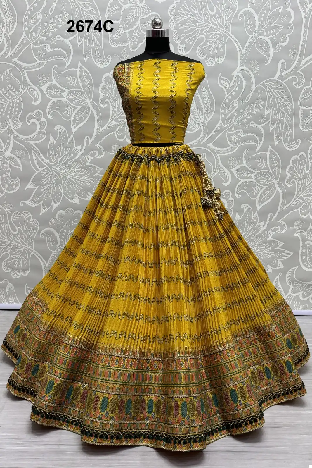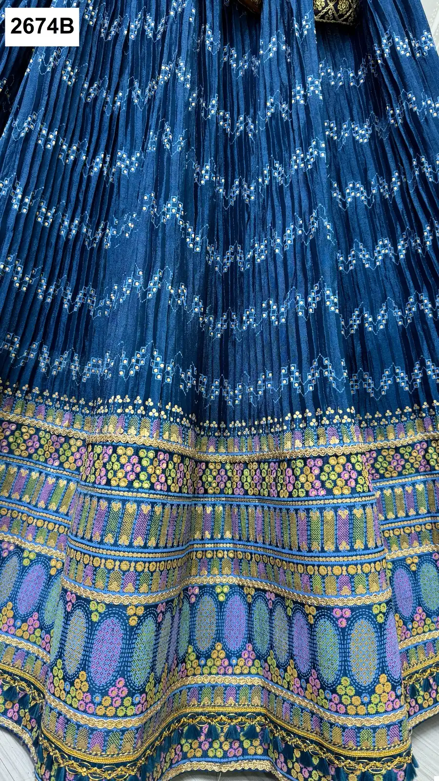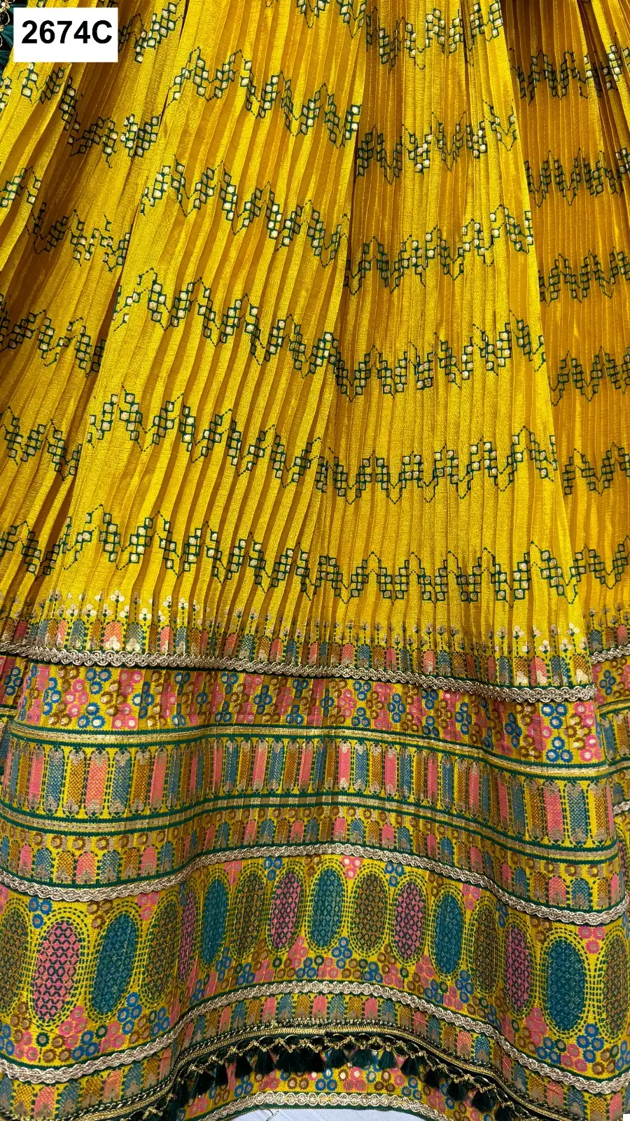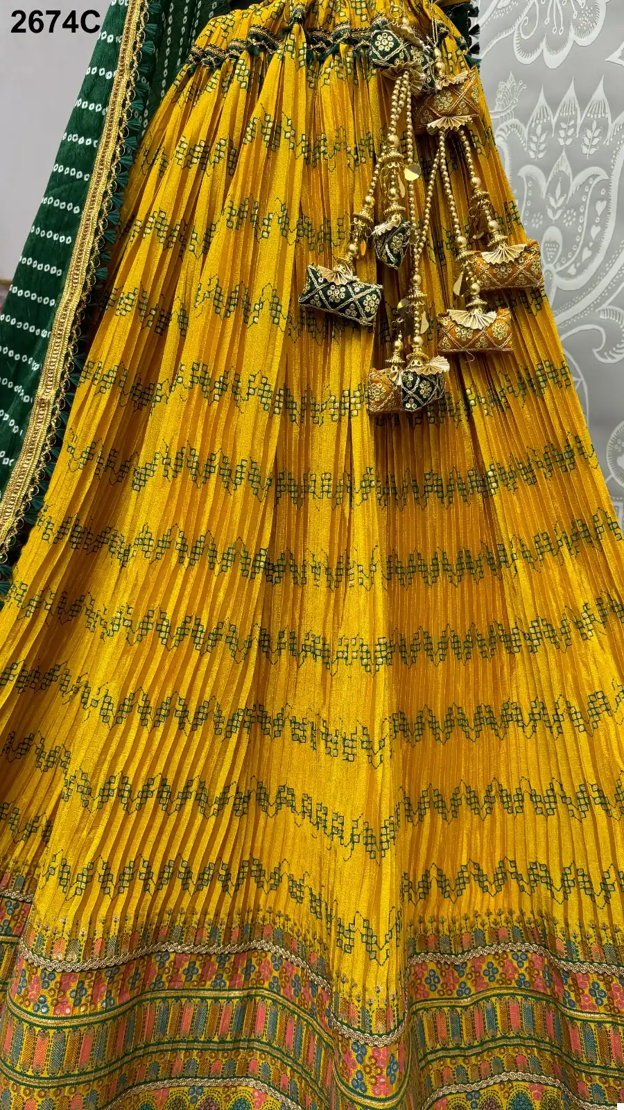 - The lehenga is crafted from Chiffon fabric, known for its lightweight and flowy nature.