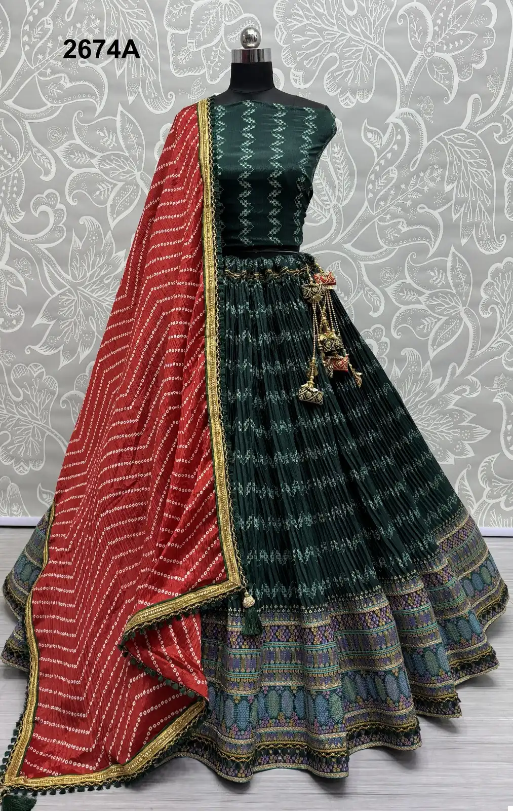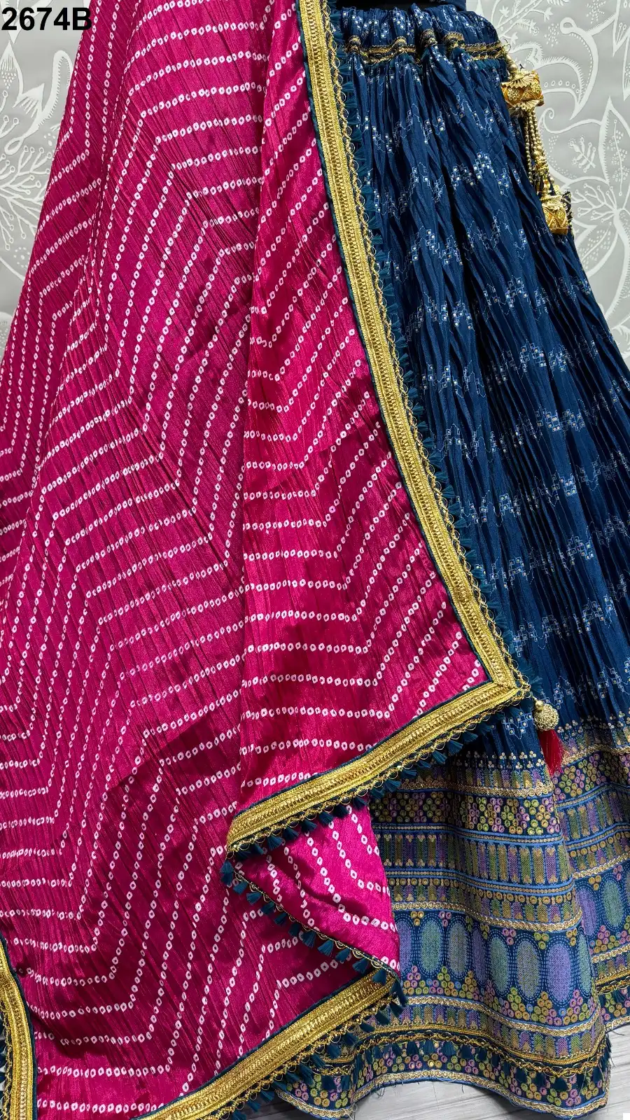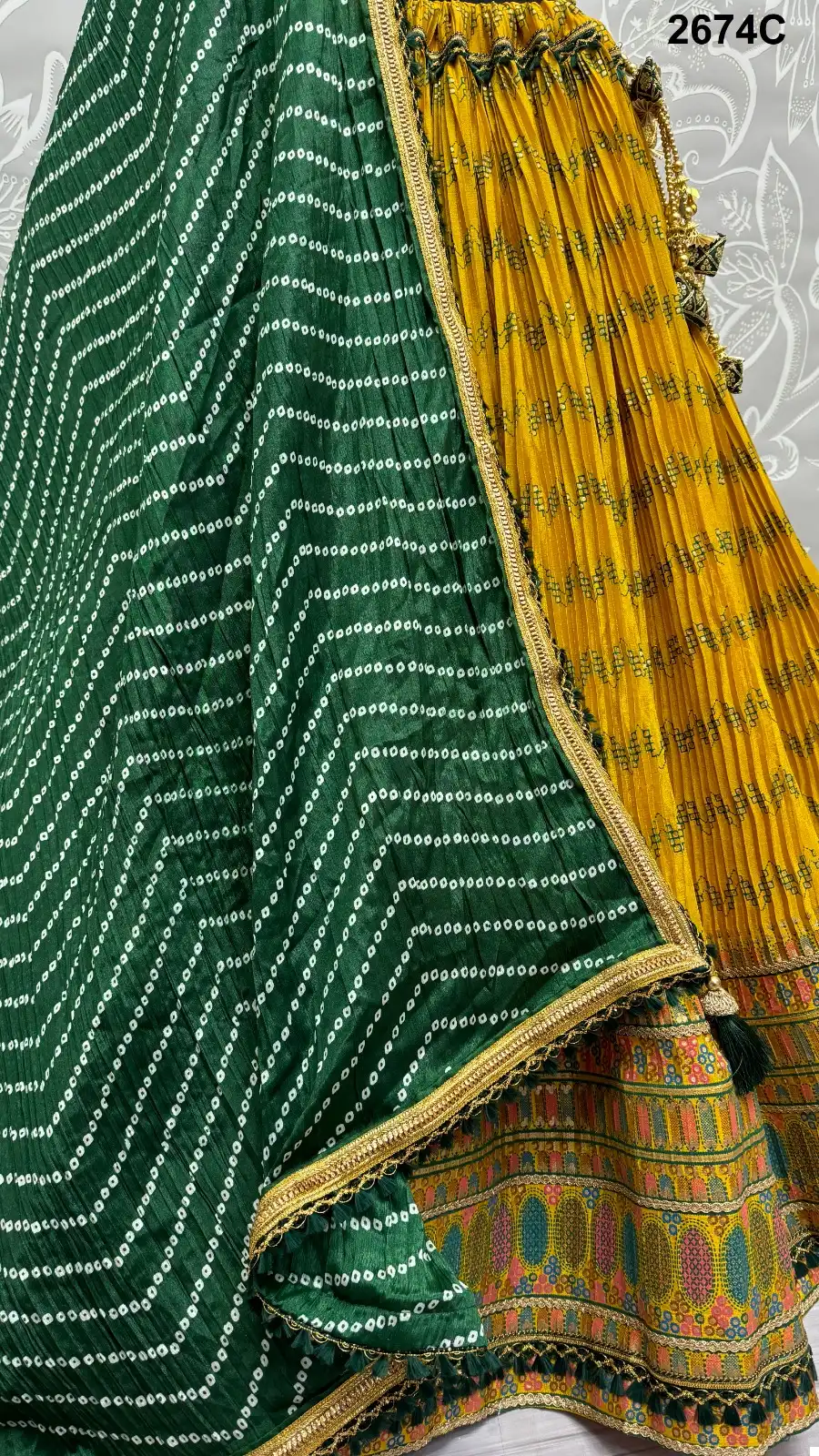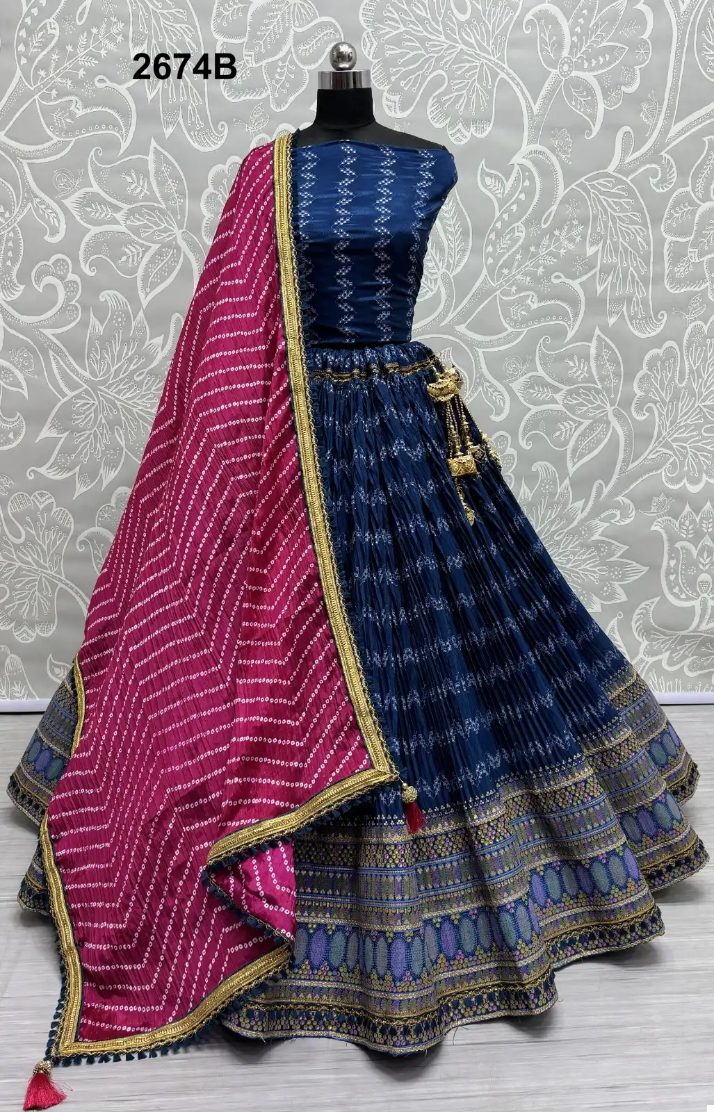 - The lehenga is crafted from Chiffon fabric, known for its lightweight and flowy nature.