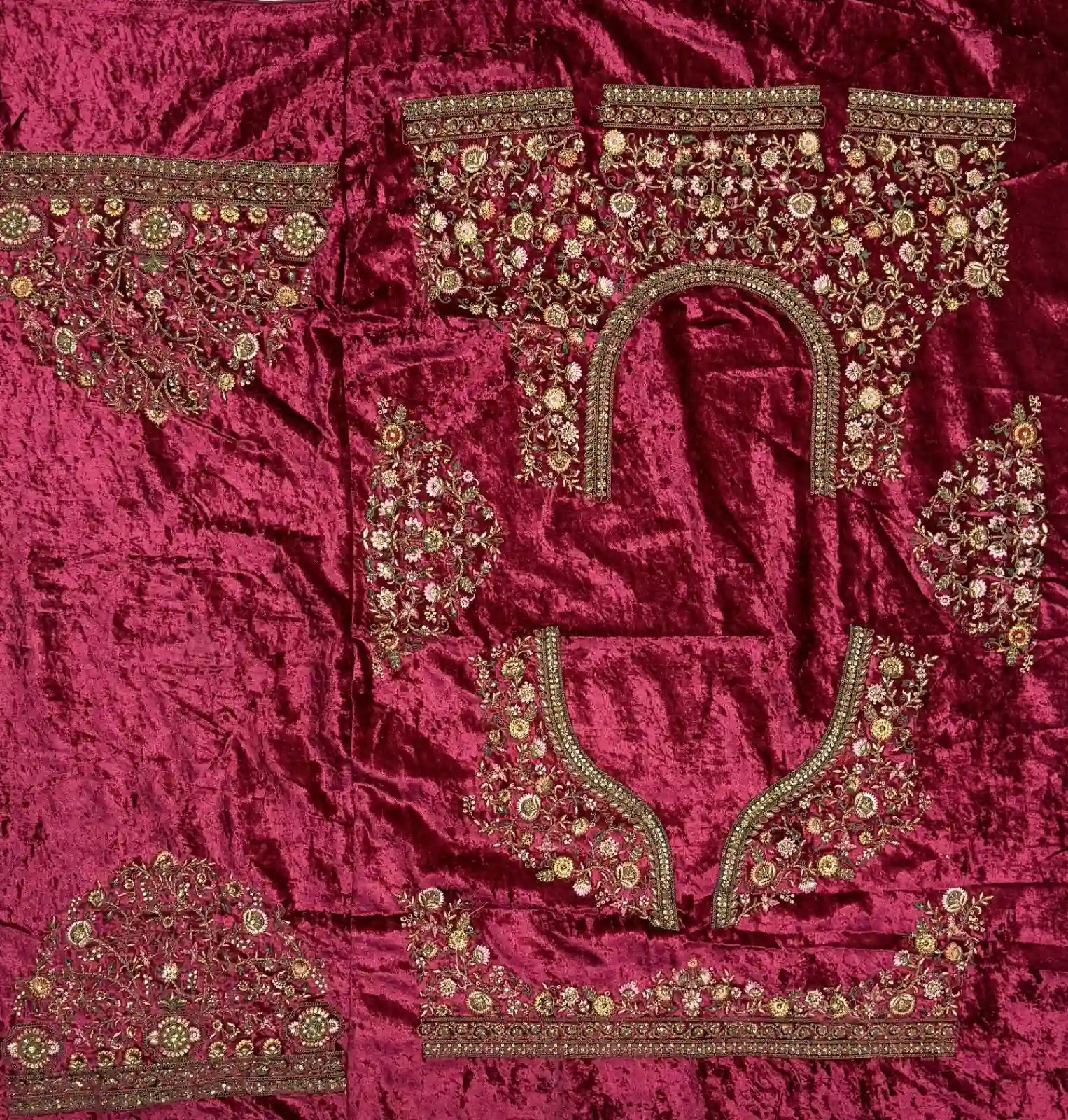 Work: Cutting Crafted Fabrics, Patchwork, Heavy Lace Work, Dori and Zari Work, Sequence and Diamond Work