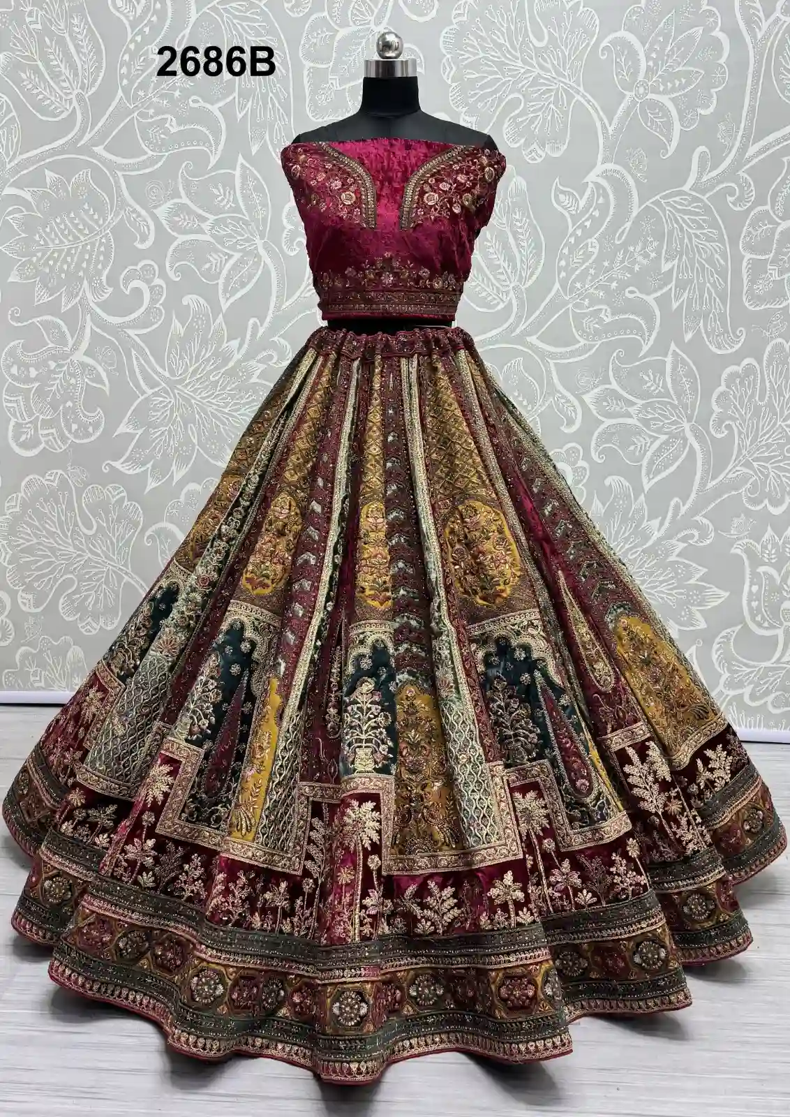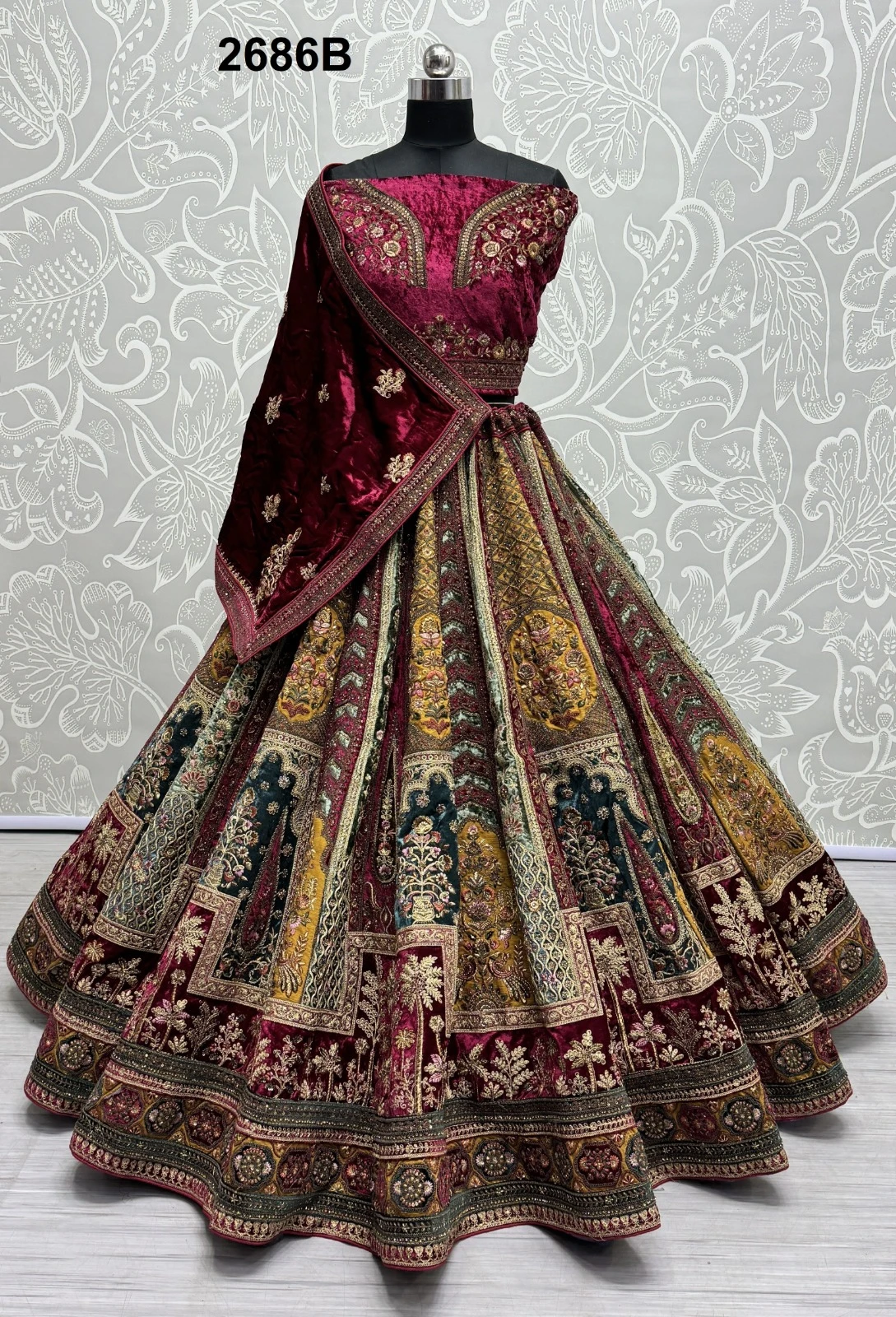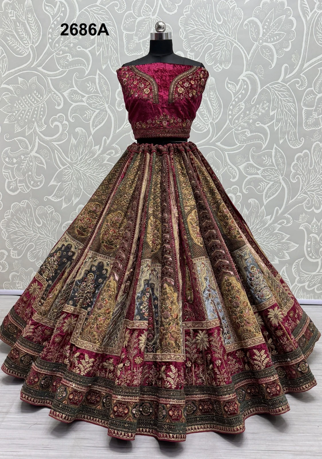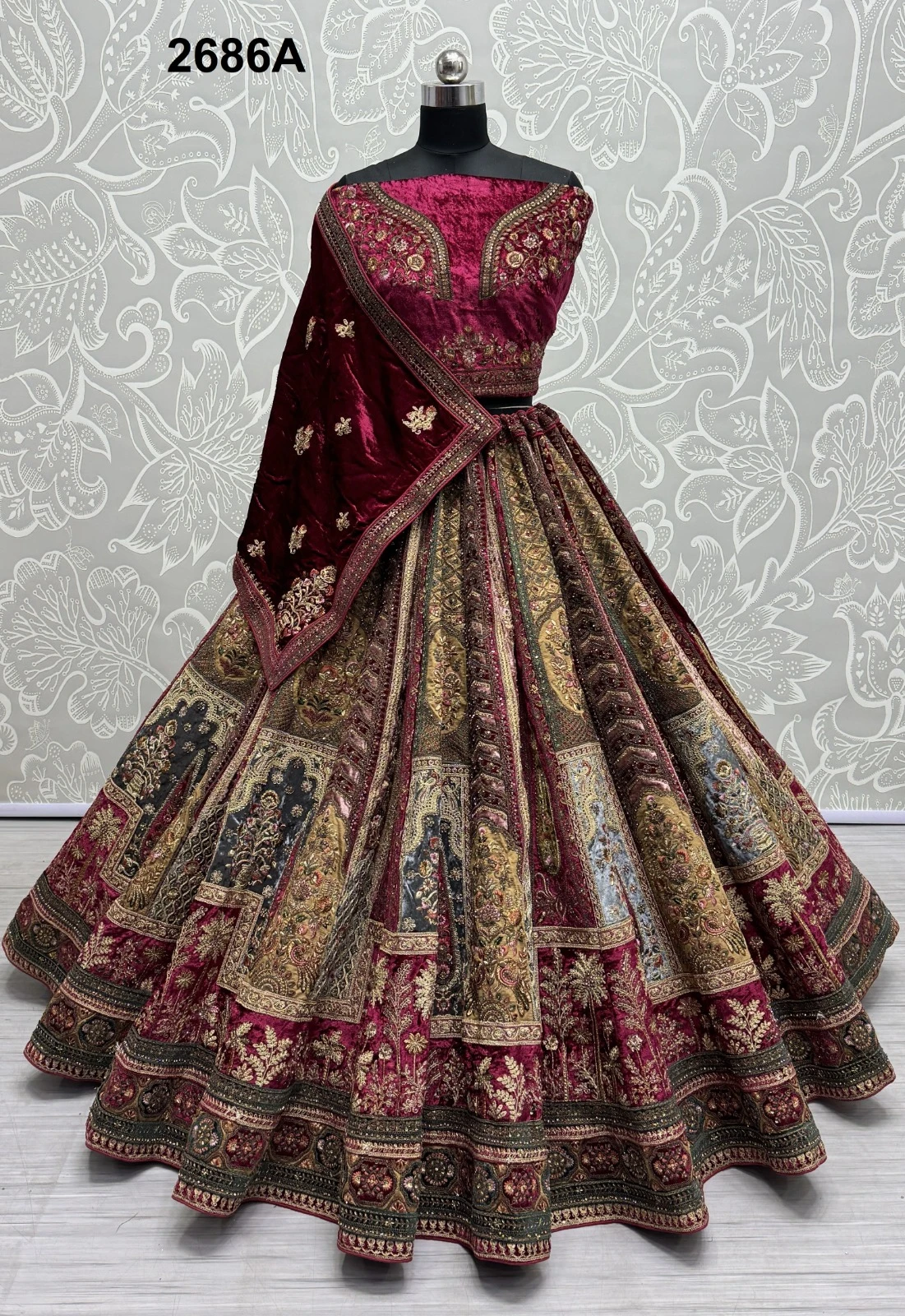 Anjani Art Designer Indian Bridal Velvet Lehenga Wholesale Catalog.