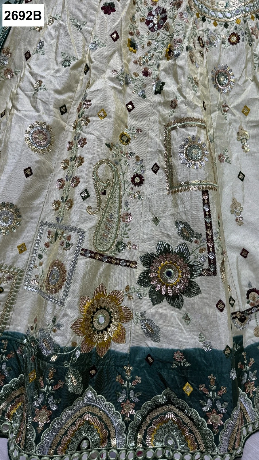 - Details: Multi Cotton Thread, Different Sequence Work, Paper Mirror Crafted, Fancy Embroidery Pattern