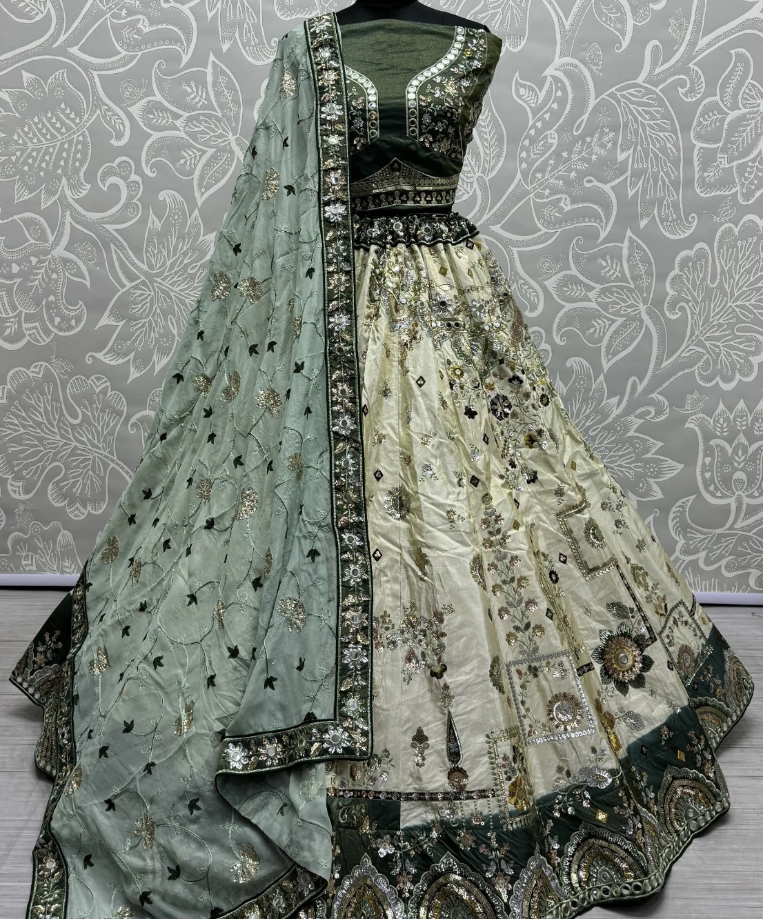 - Luxurious Fabric: Crafted from heavy pure viscose fabric, the lehenga set exudes luxury and sophistication.