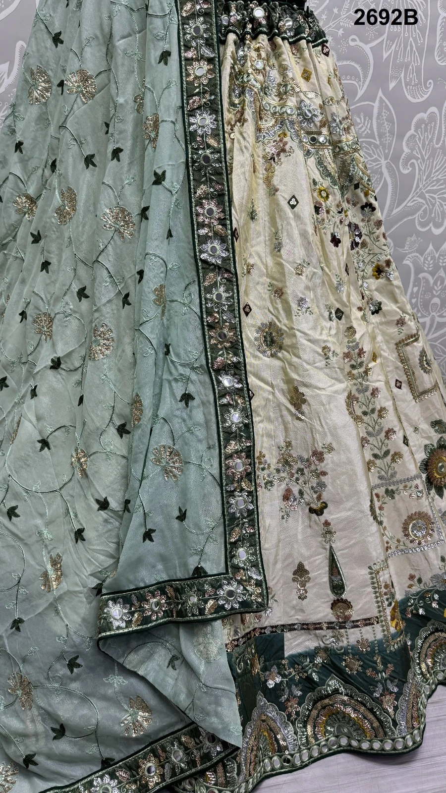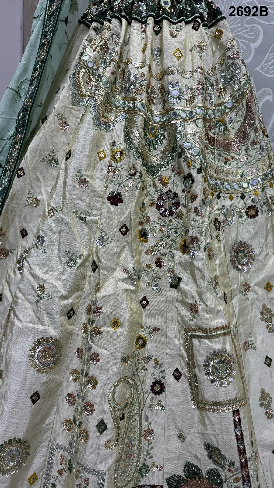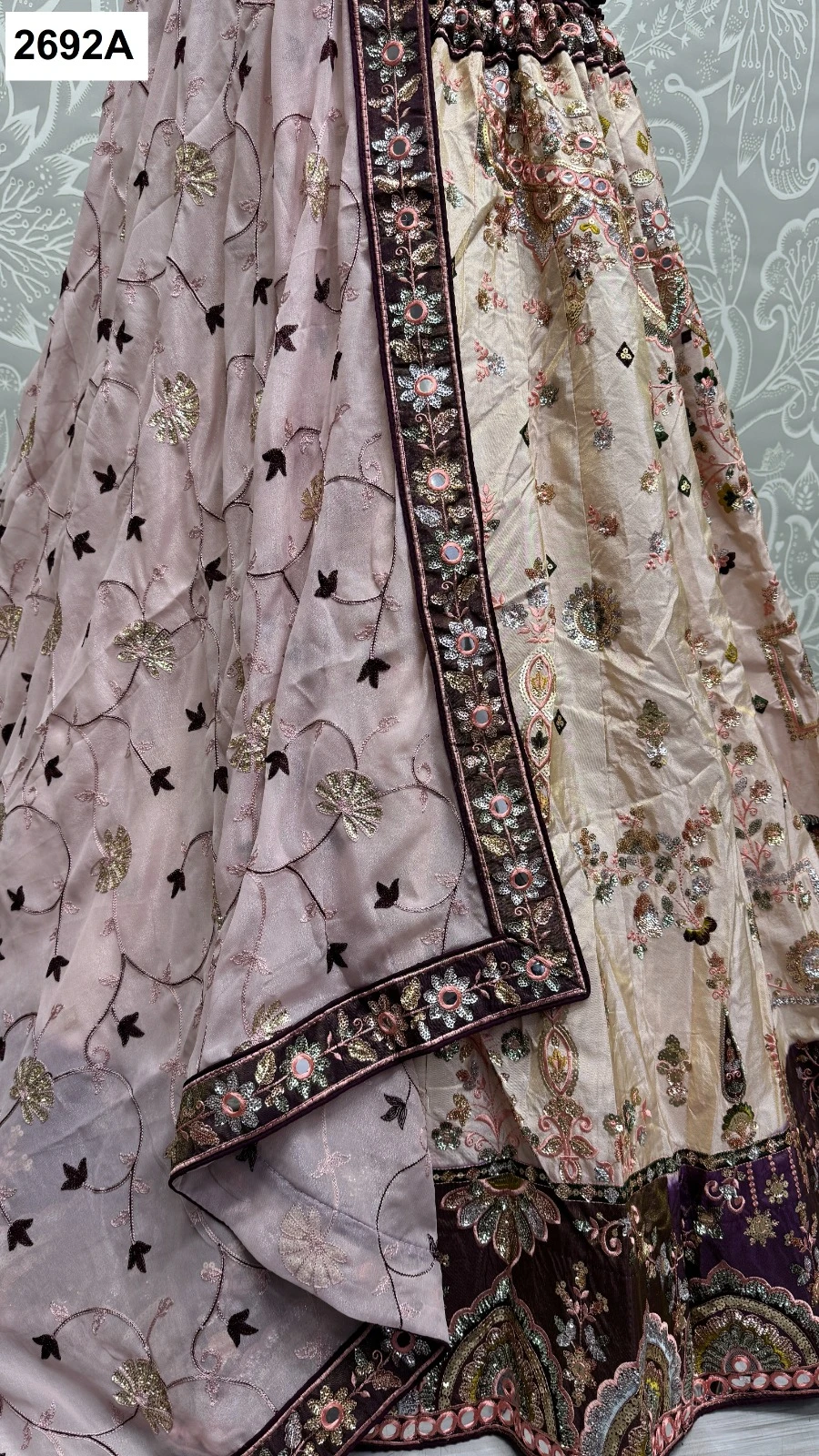 - Exquisite Work: Adorned with intricate multi-thread embroidery, sequence work, paper mirror crafting, and fancy embroidery patterns, the ensemble showcases exquisite craftsmanship.