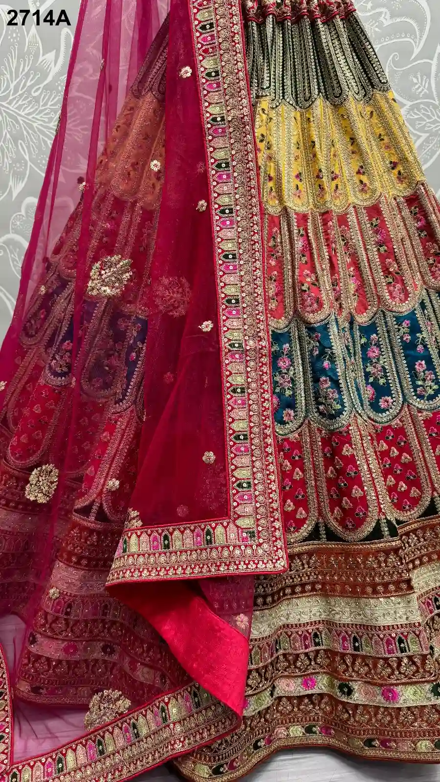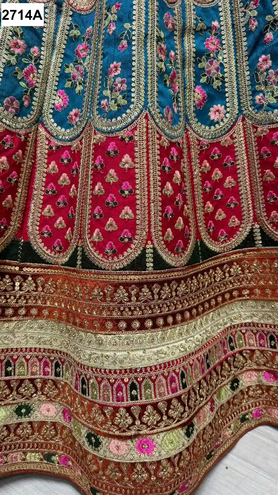 - Lehenga: Silk with Sequence Work, Lace Work, Colorful Patch Work, and Multi Thread Embroidery