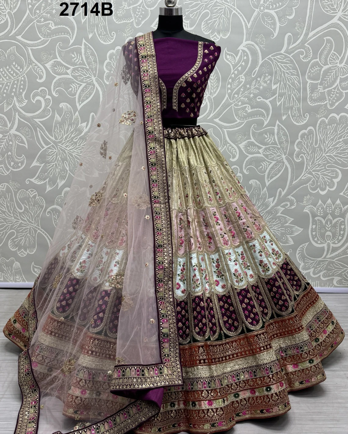 Product Title: “Luxurious Silk Lehenga Set with Sequence Work and Multi Thread Embroidery”