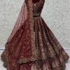 This heavily embroidered velvet lehenga exudes grandeur with its diamond-studded detailing, making it a perfect ensemble for brides, bridesmaids, and fashion enthusiasts who appreciate regal aesthetics. The soft net dupatta with delicate lacework enhances its elegance, adding the perfect finishing touch to your look.