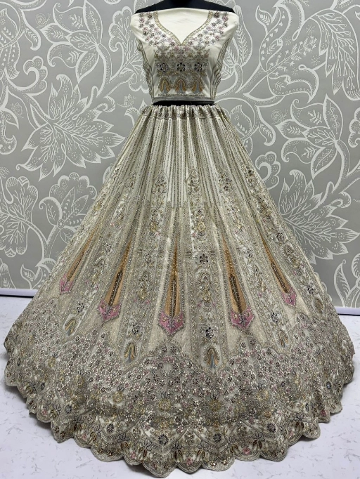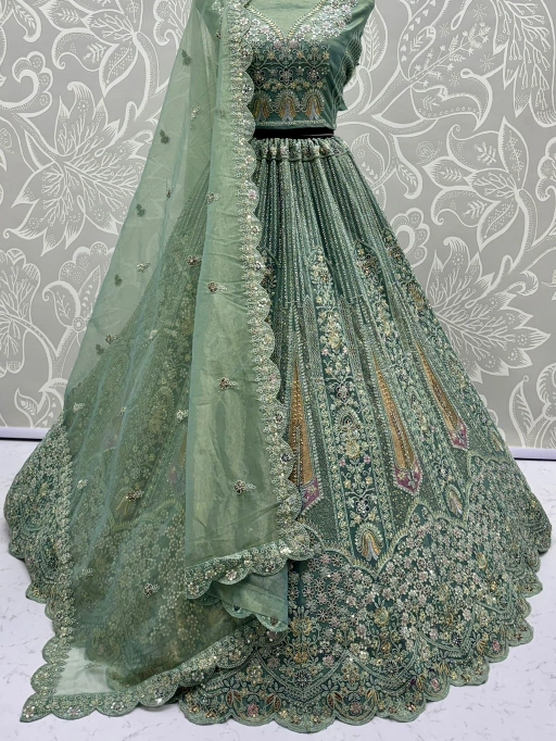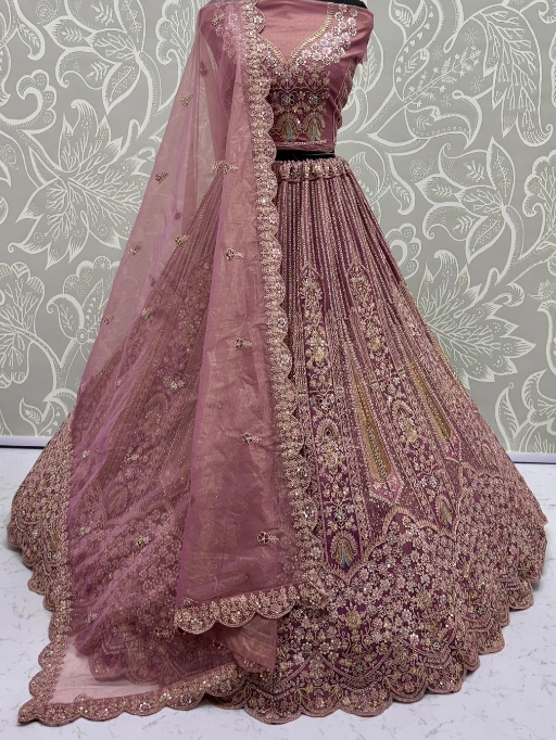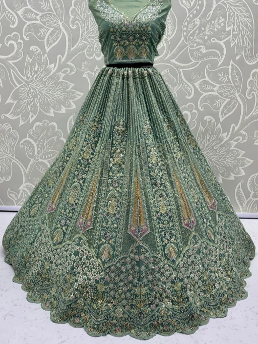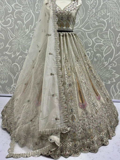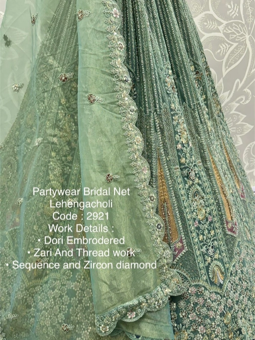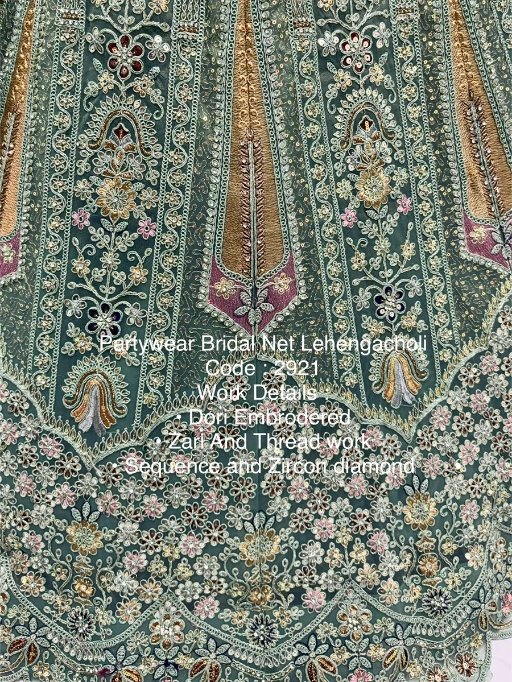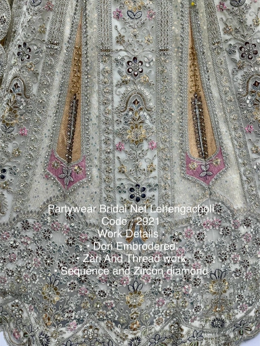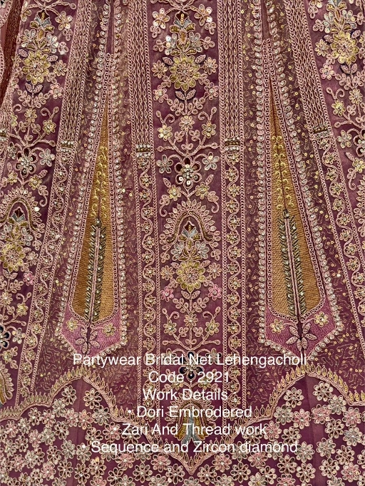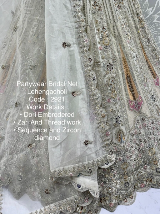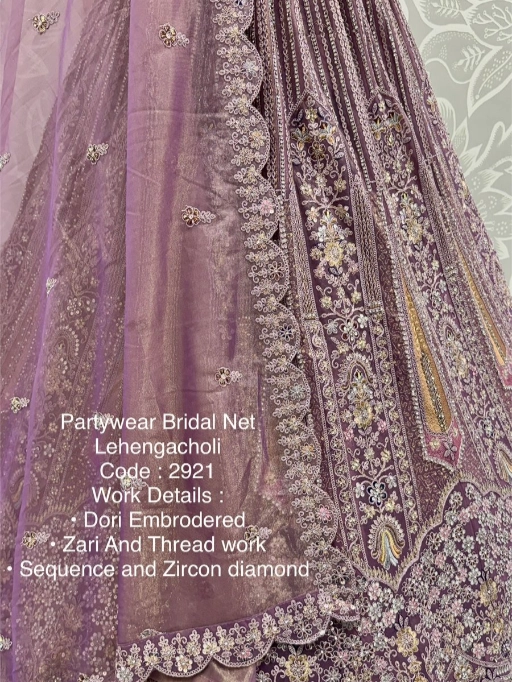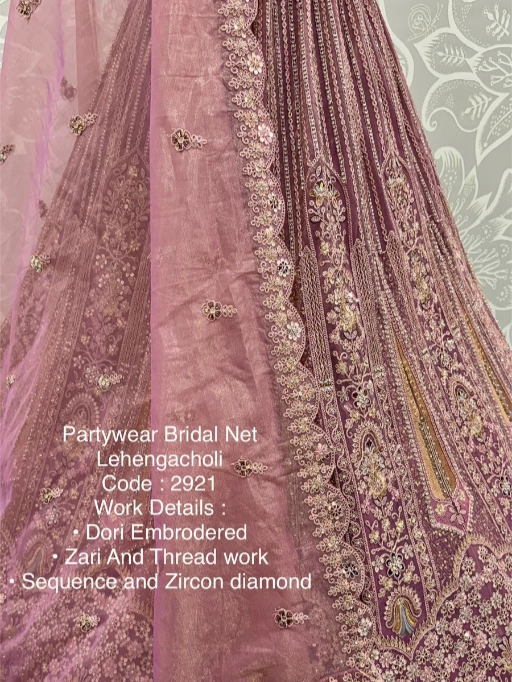 Turn every head as you walk in with this luxurious bridal net lehenga choli, designed to make your special day even more memorable. Crafted with premium bridal net fabric and adorned with dori embroidery, zari & thread work, sequins, and zircon diamonds, this ensemble is the perfect blend of royal elegance and modern sparkle.