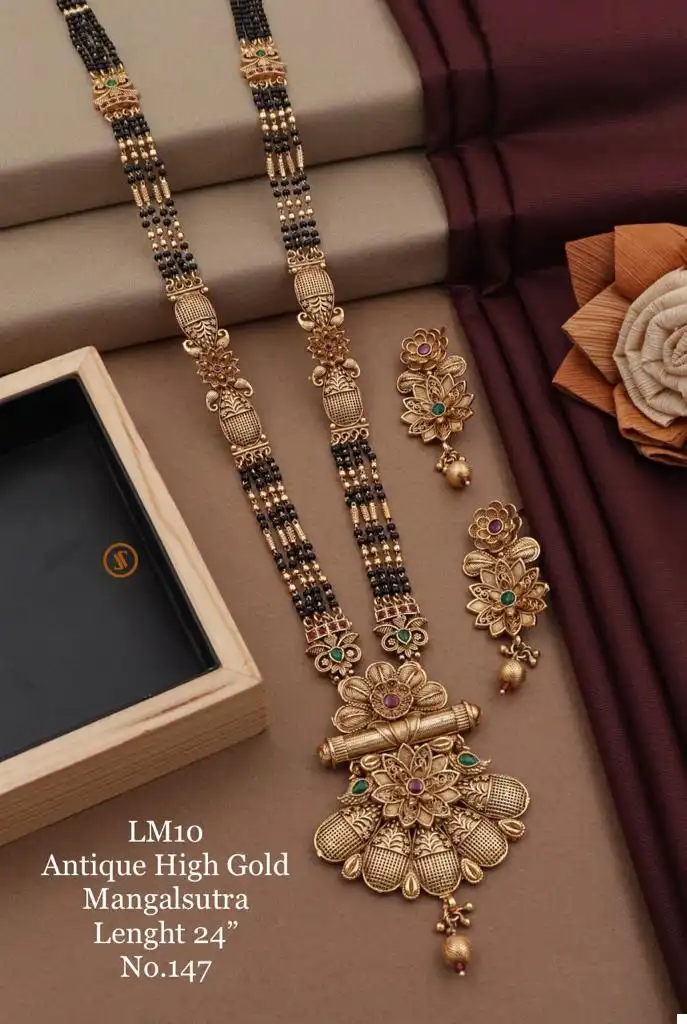 Symbol of Union: In Indian culture, the mangalsutra is a symbol of marital union and commitment. Our Antique High Gold Mangalsutra not only embodies this tradition but also reflects your refined taste in jewelry.