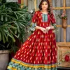 Aradhna Ikat Vol 3 Rayon 14 Kg Wholesale Long Gown Catalog 12 Pcs. We deal in Kurtis, Sarees, Dresses Materials, Leggings, and Designer Salwar Kameez.