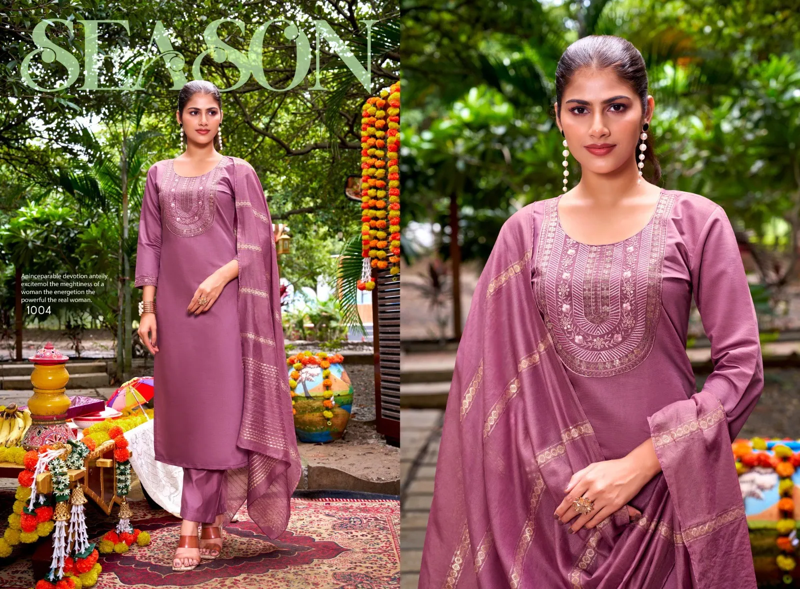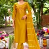 At Satranga Gadhwal Embroidery work Kurti Pant And Dupatta Set