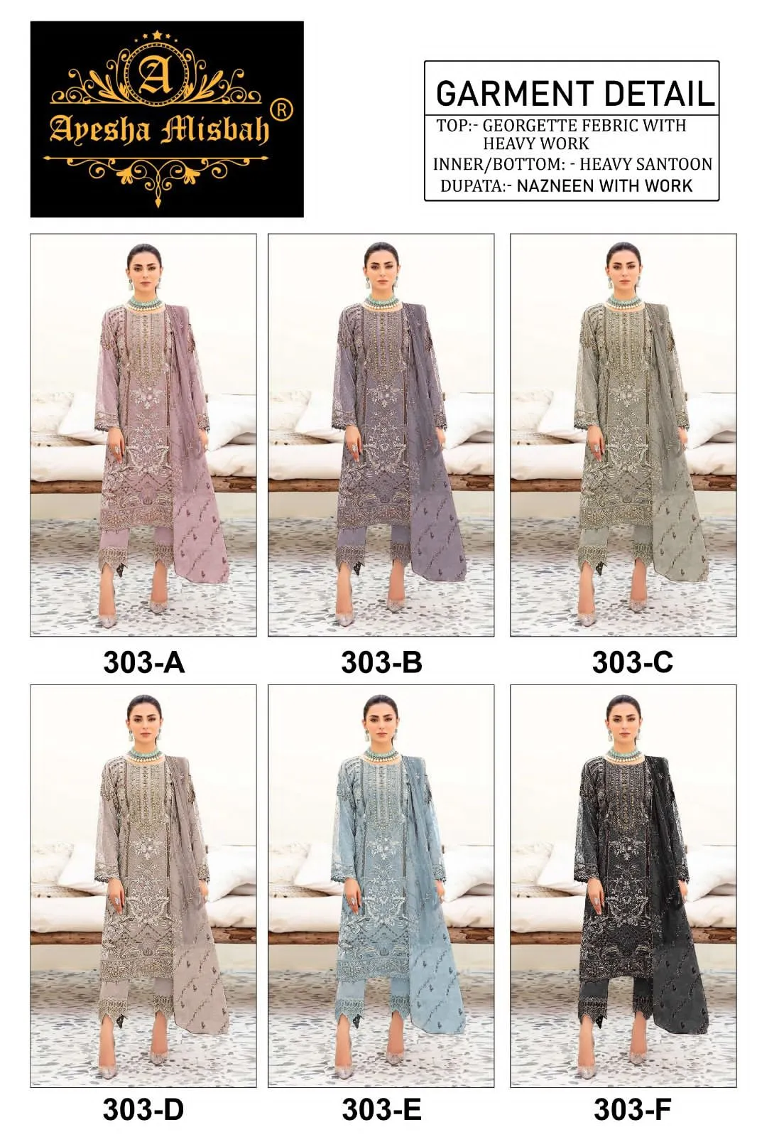 Ayesha Misbah 303 Georgette Wholesale Pakistani Salwar Suit Collection