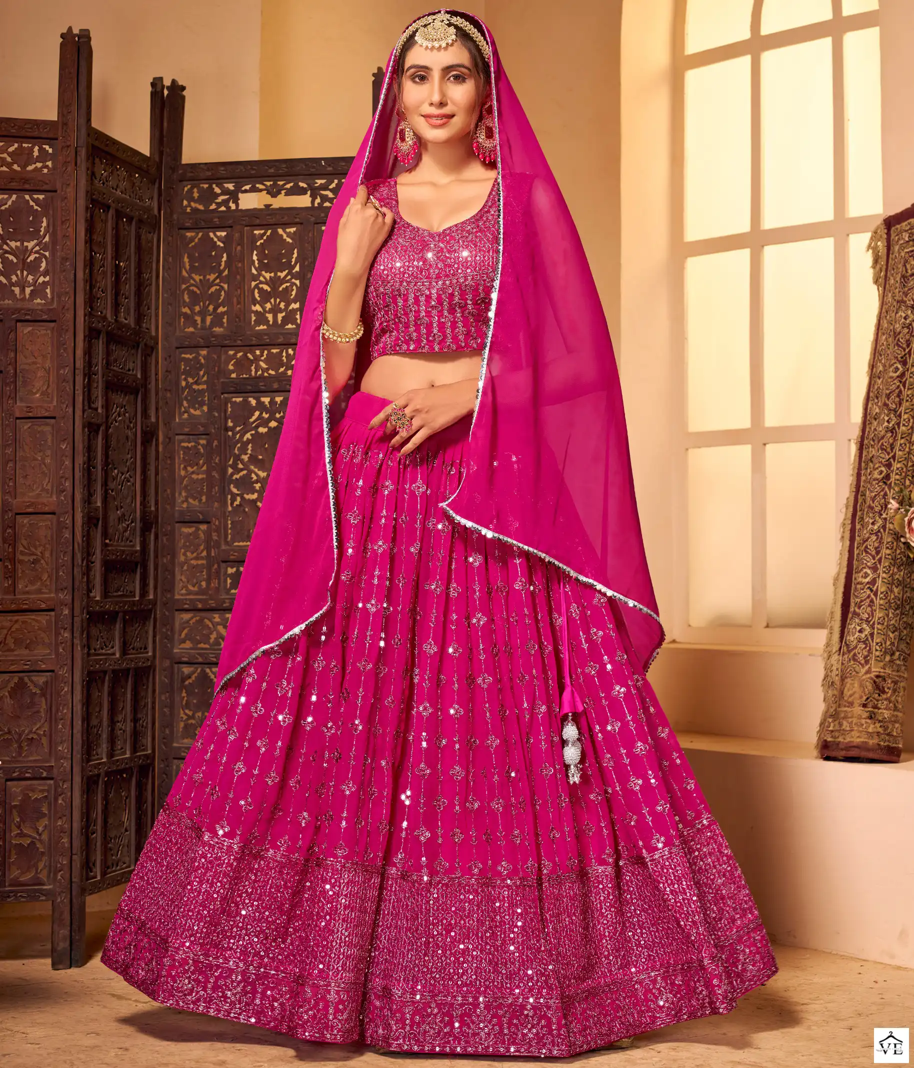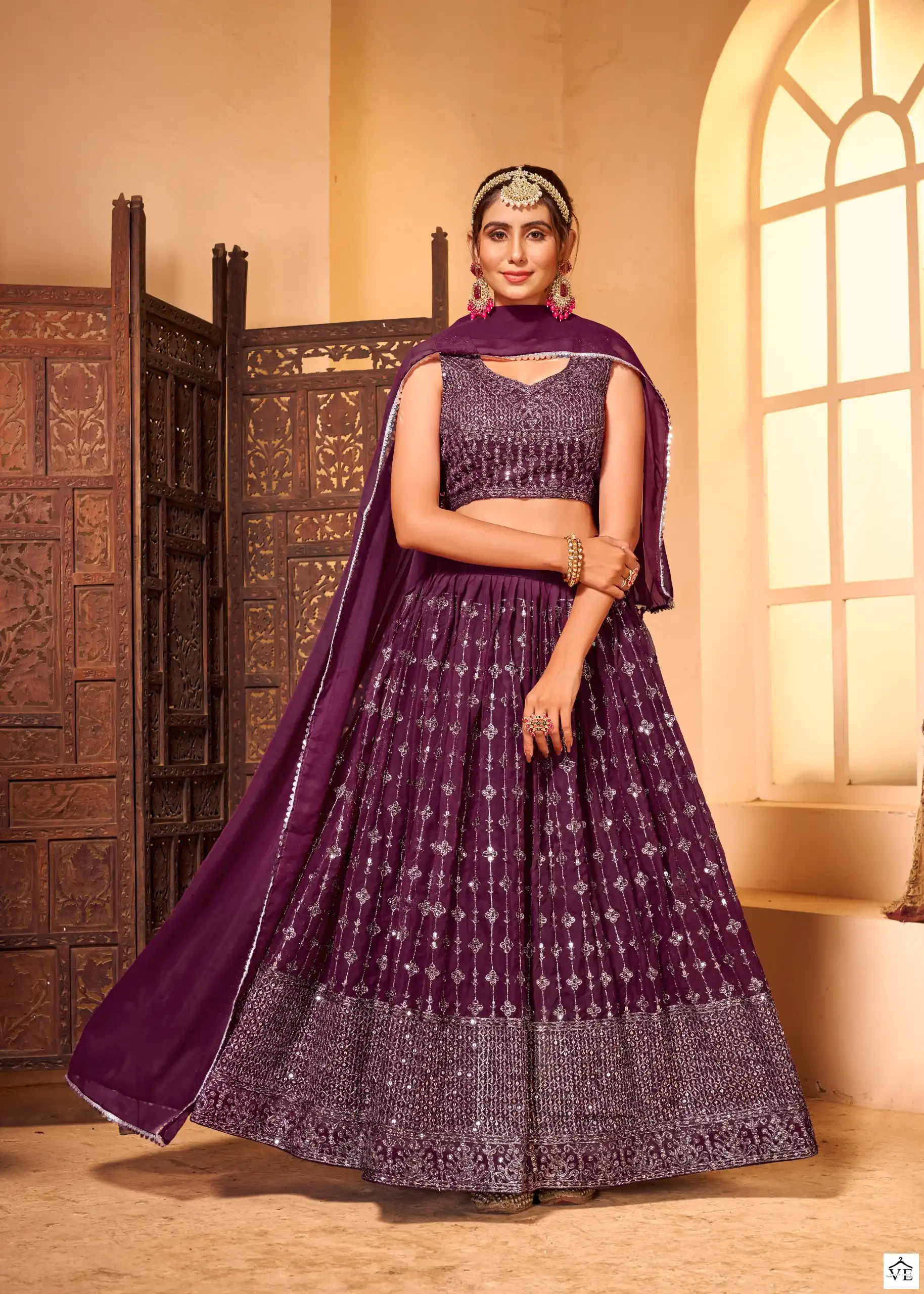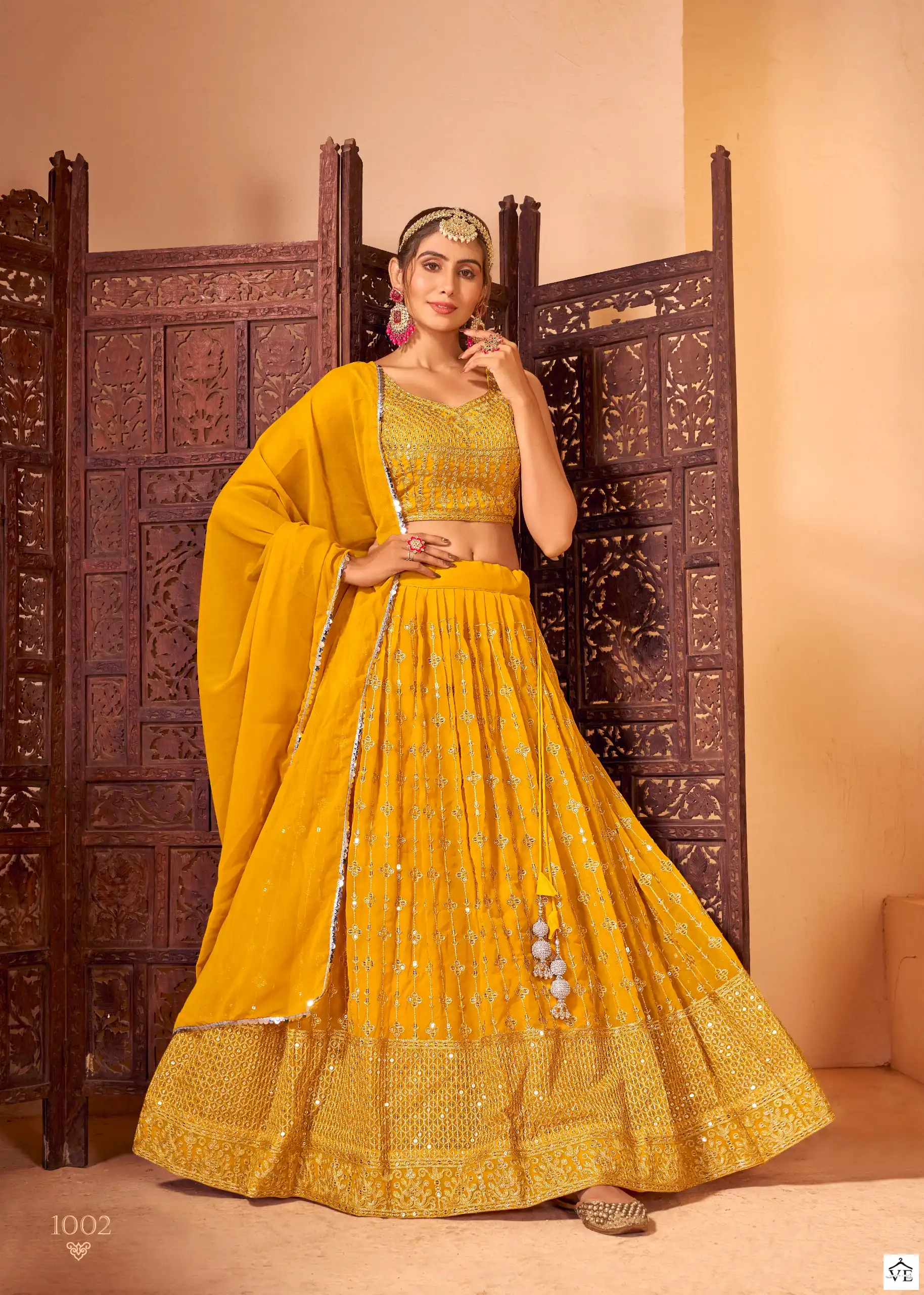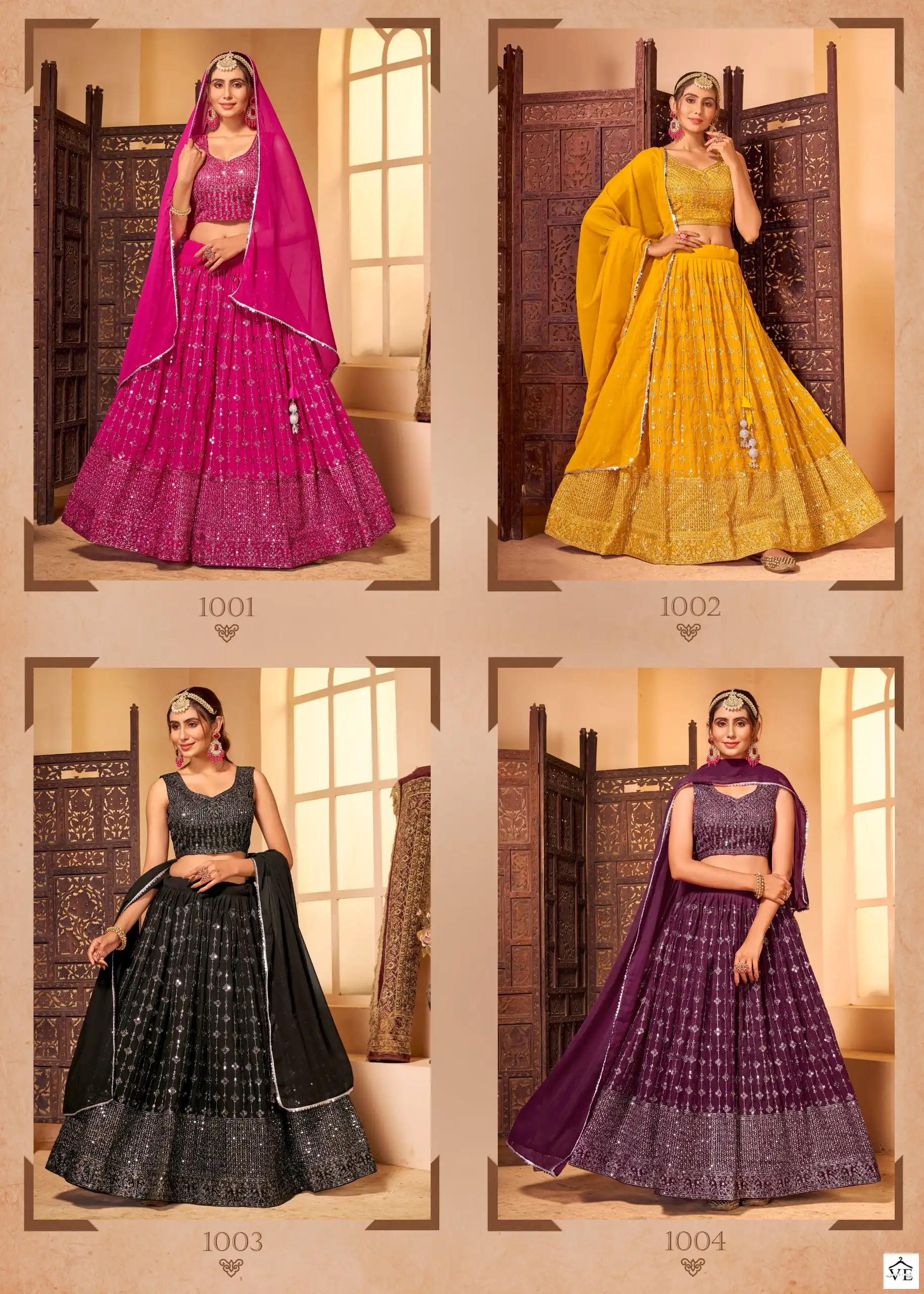 Banwery Guzaarish Pure Georgette Wholesale Lehenga Catalog of 4 Pcs. We deal in Kurtis, Sarees, Dresses Materials, Leggings, and Designer Salwar Kameez.