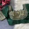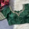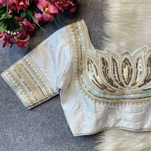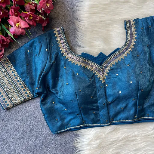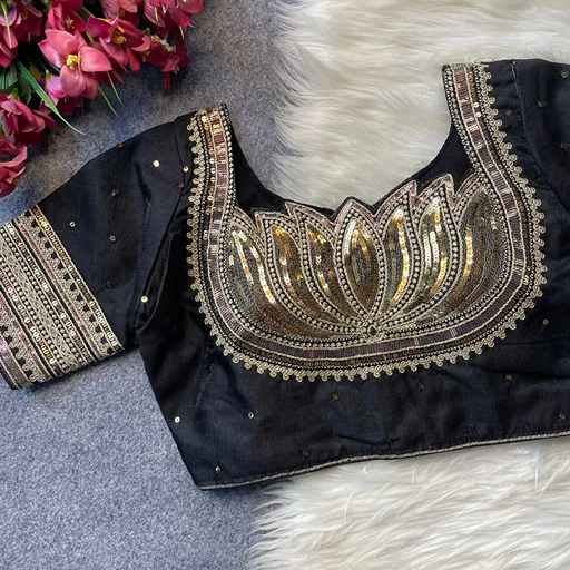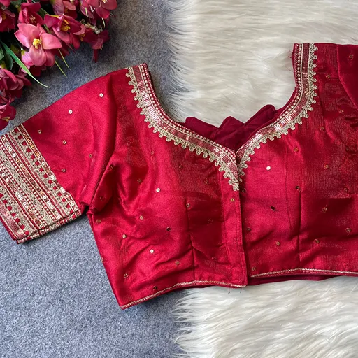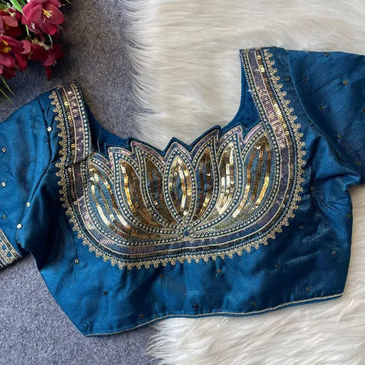 | Fabric | Heavy Milan Silk.Beautiful Blouse Partywear desgine Heavy Stitching Heavy Padded With Beautiful Work FRONT open Style |