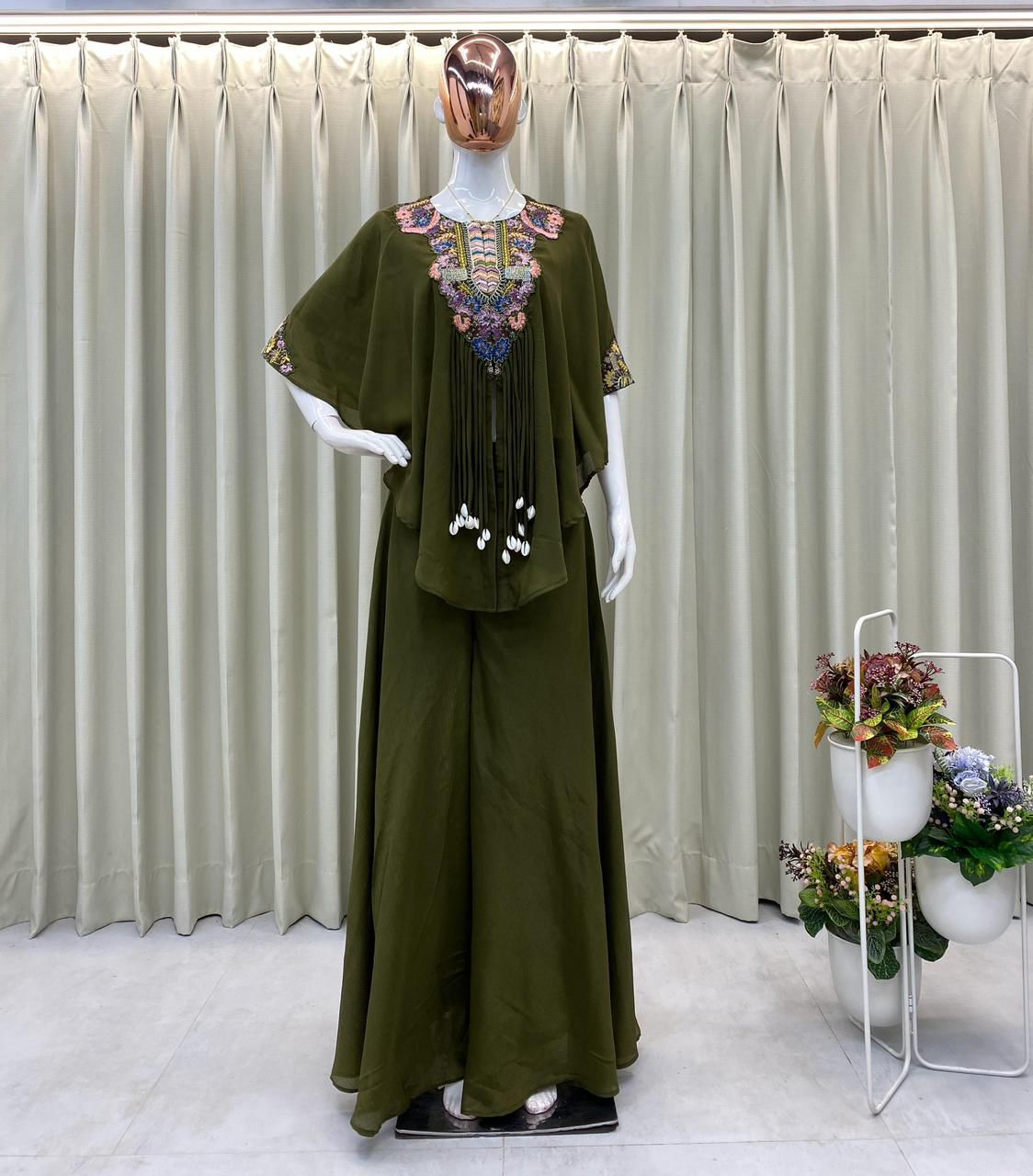 - Designed for comfort, versatility, and high visual appeal, this Indo-Western outfit is ideal for party wear, festive celebrations, wedding functions, receptions, and special gatherings. The flowy silhouette, lightweight fabric, and rich embroidery ensure effortless grace with every movement.