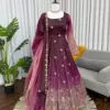 Beautiful Chinon Silk Anarkali Salwar Suit Set with Dupatta