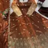 - The Anarkali is tailored from premium Chinon silk, offering a soft flow and graceful drape. Enhanced with delicate thread and sequin embroidery, it creates a refined shimmer perfect for evening wear. The inner soft micro cotton lining ensures all-day comfort while maintaining a structured silhouette.