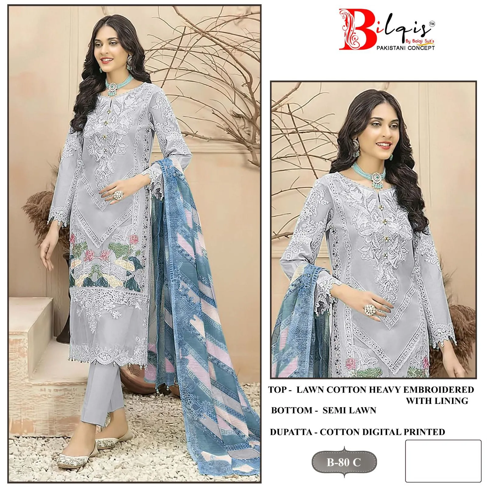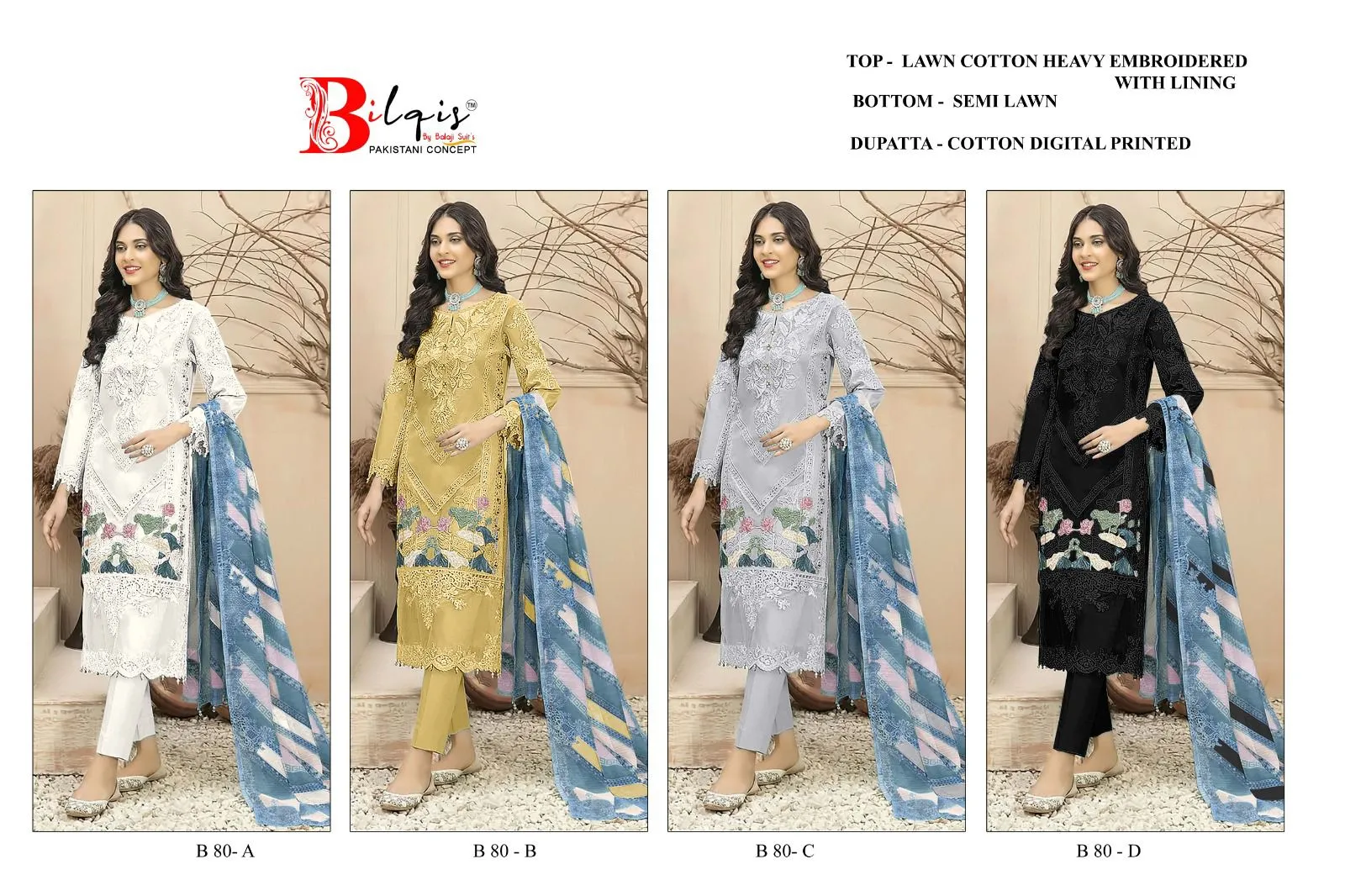 Bilqis B 80 A To D Lawn Cotton Wholesale Pakistani Salwar Suit Collection