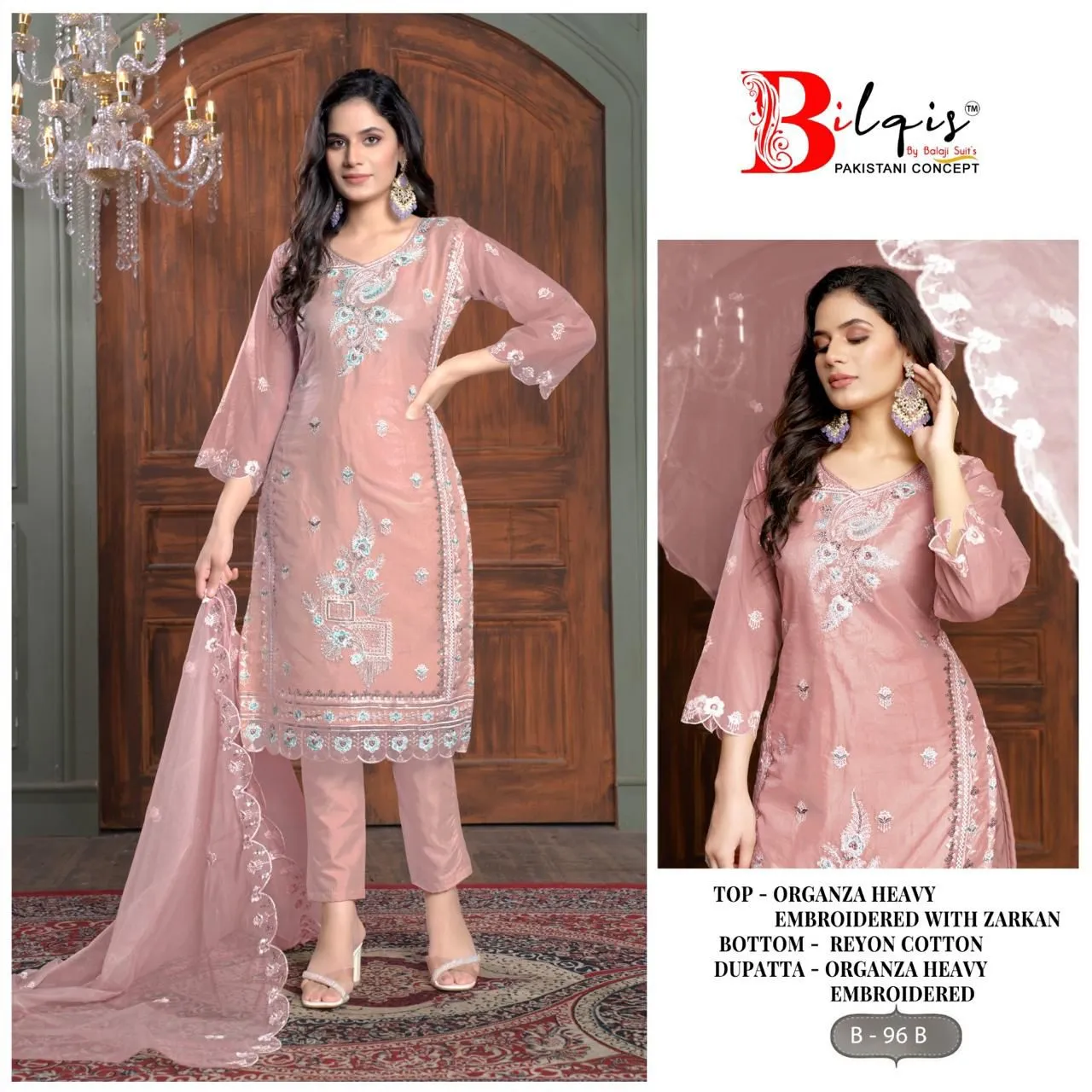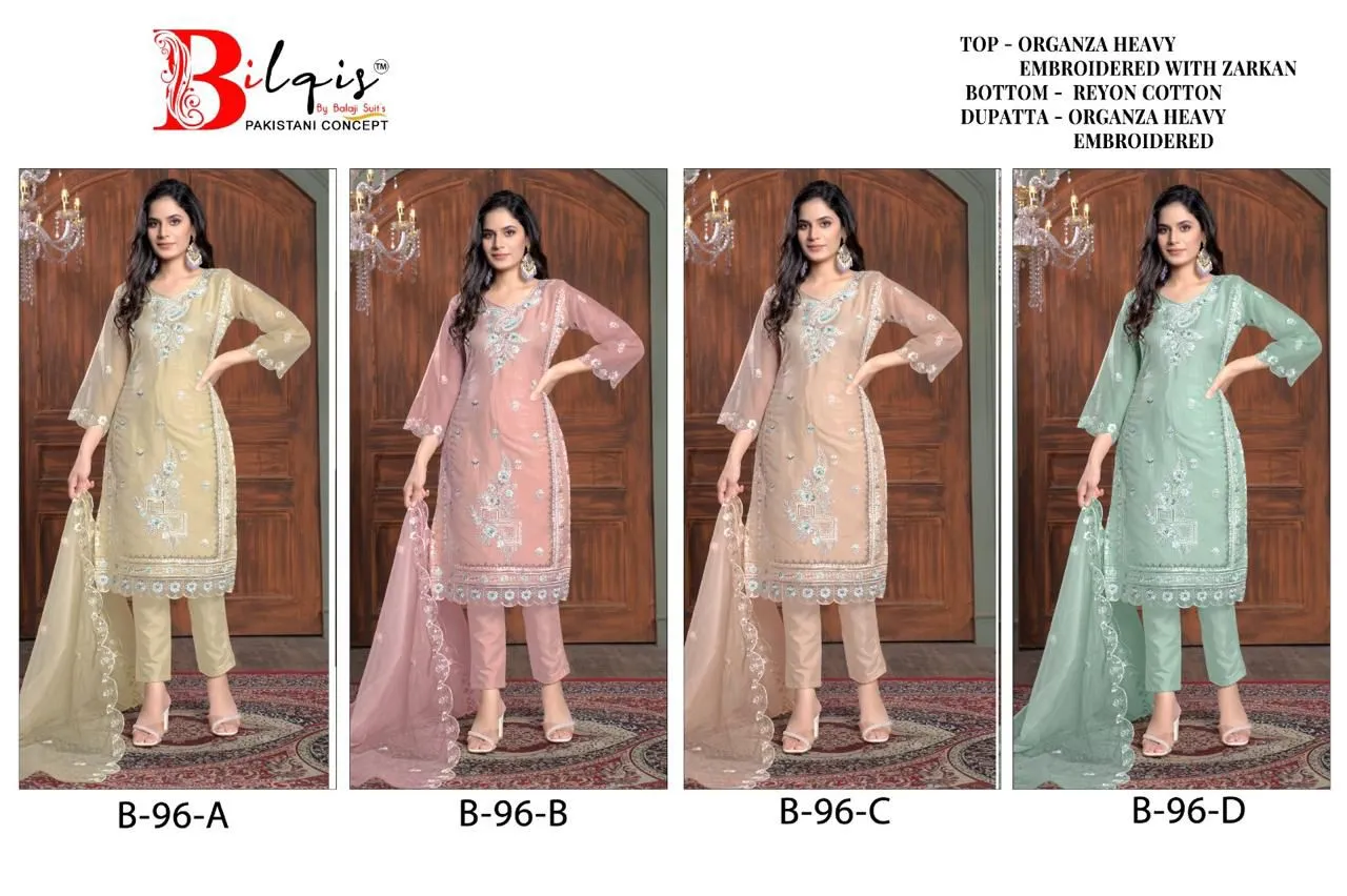 Bilqis B 96 A To D Organza Wholesale Pakistani Salwar Suit Collection