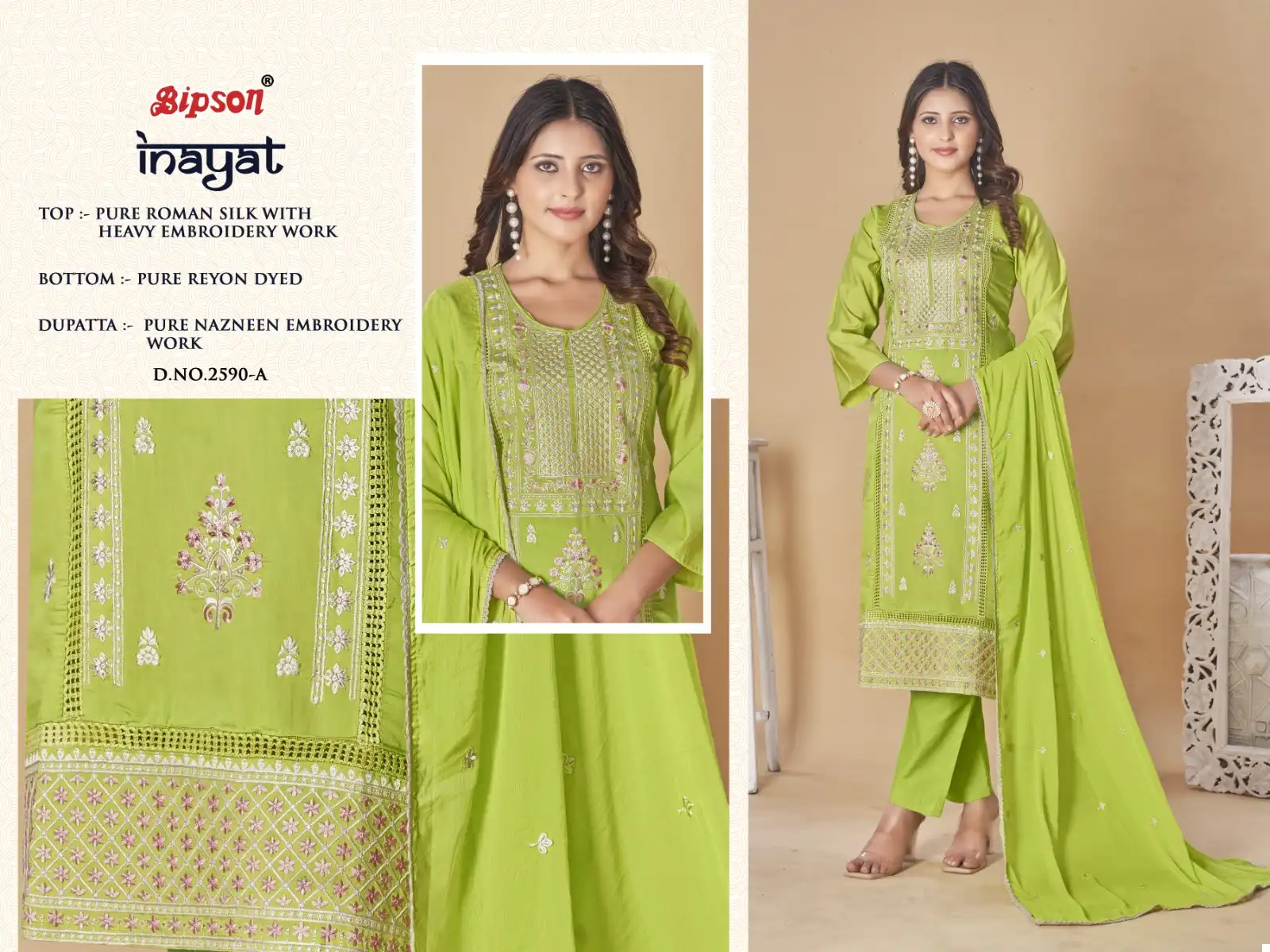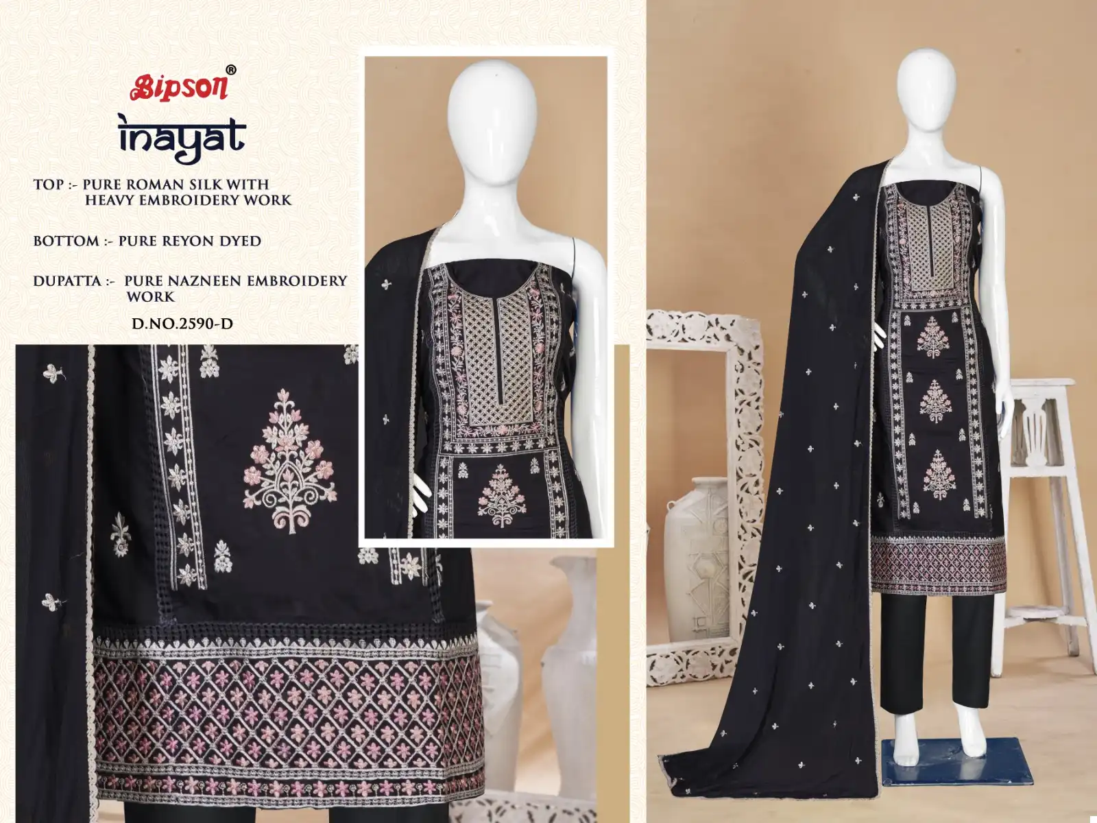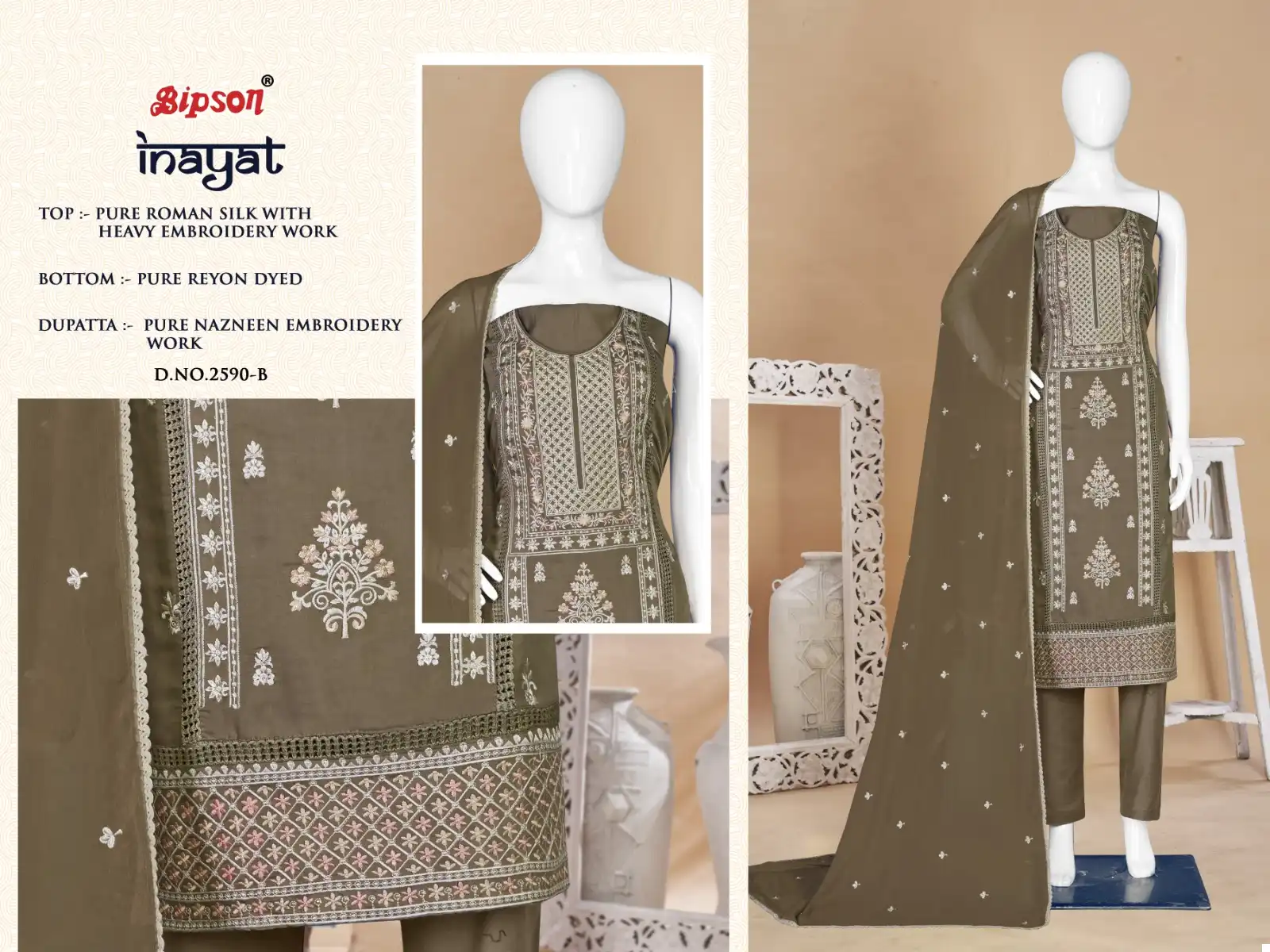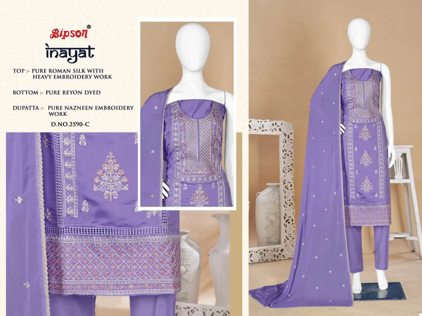 Bipson Inayat 2590 Pure Roman Silk Wholesale Fancy Salwar Suit Catalog