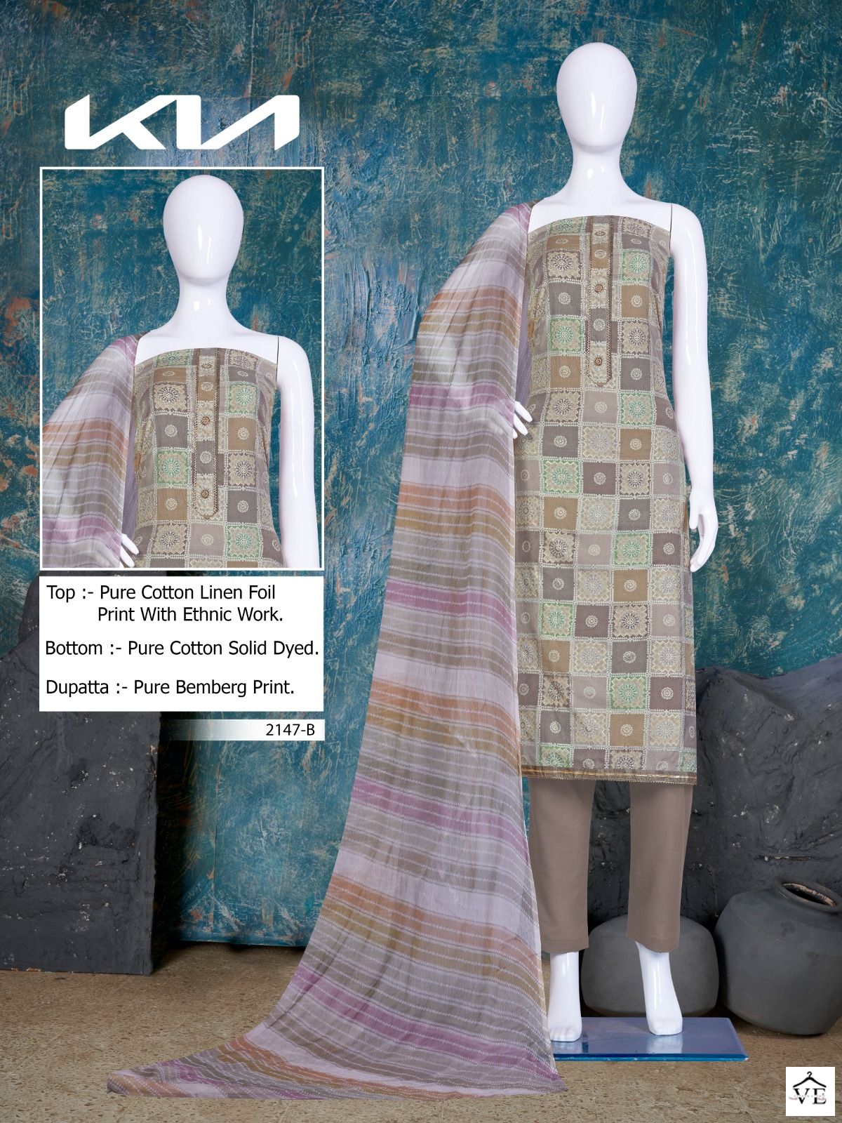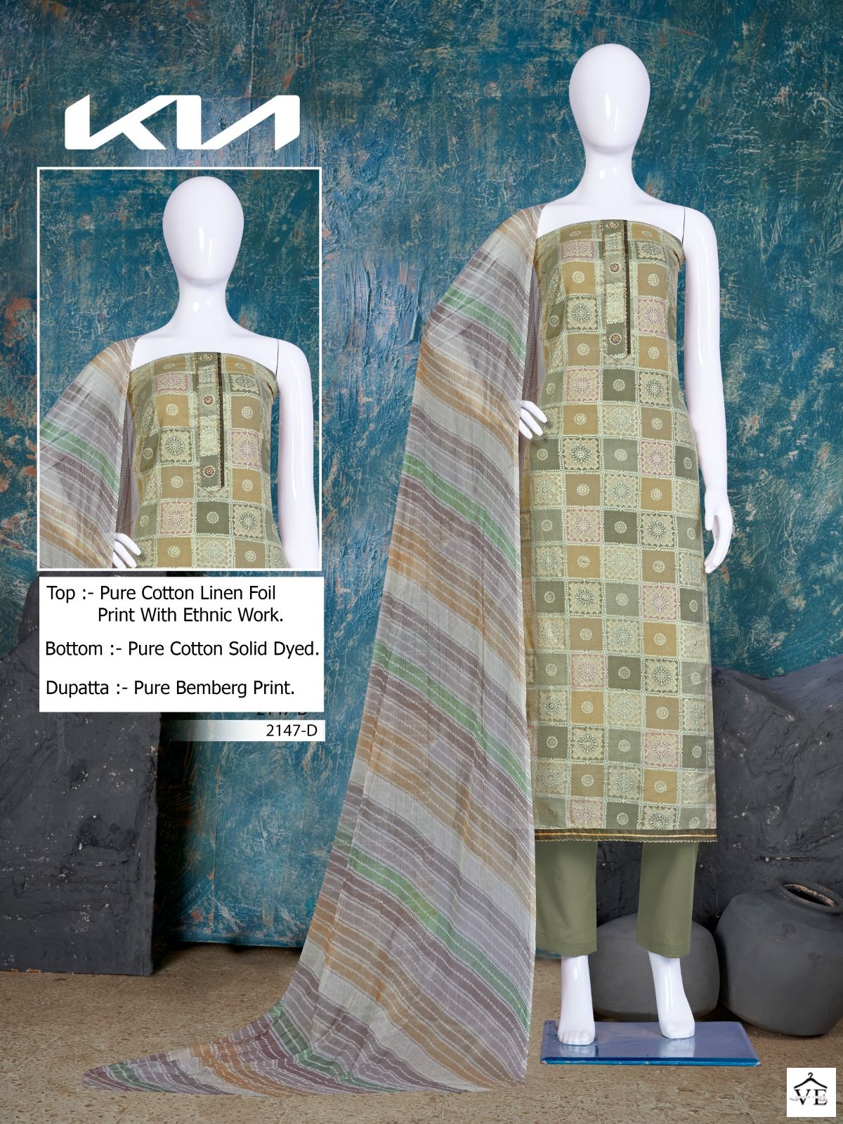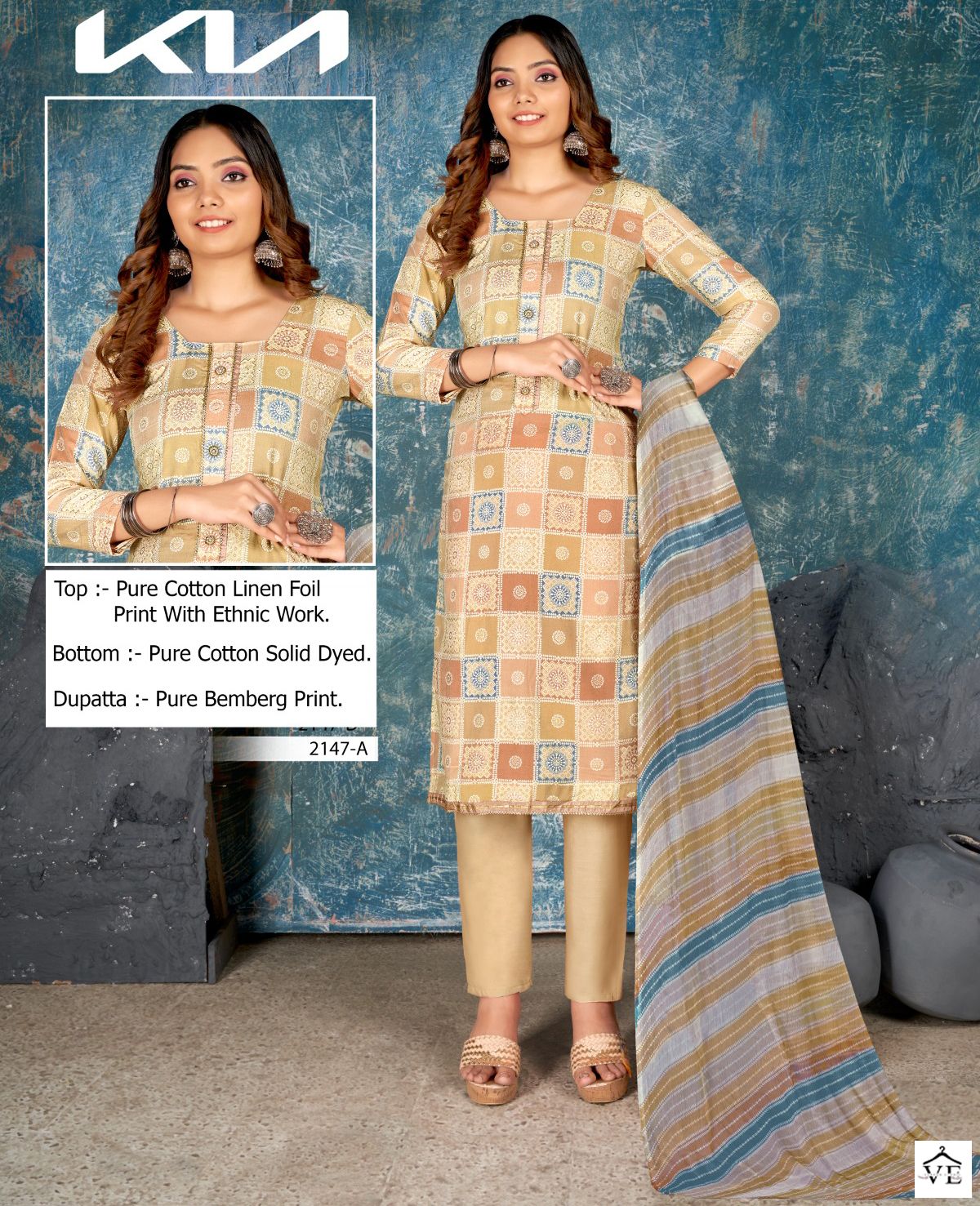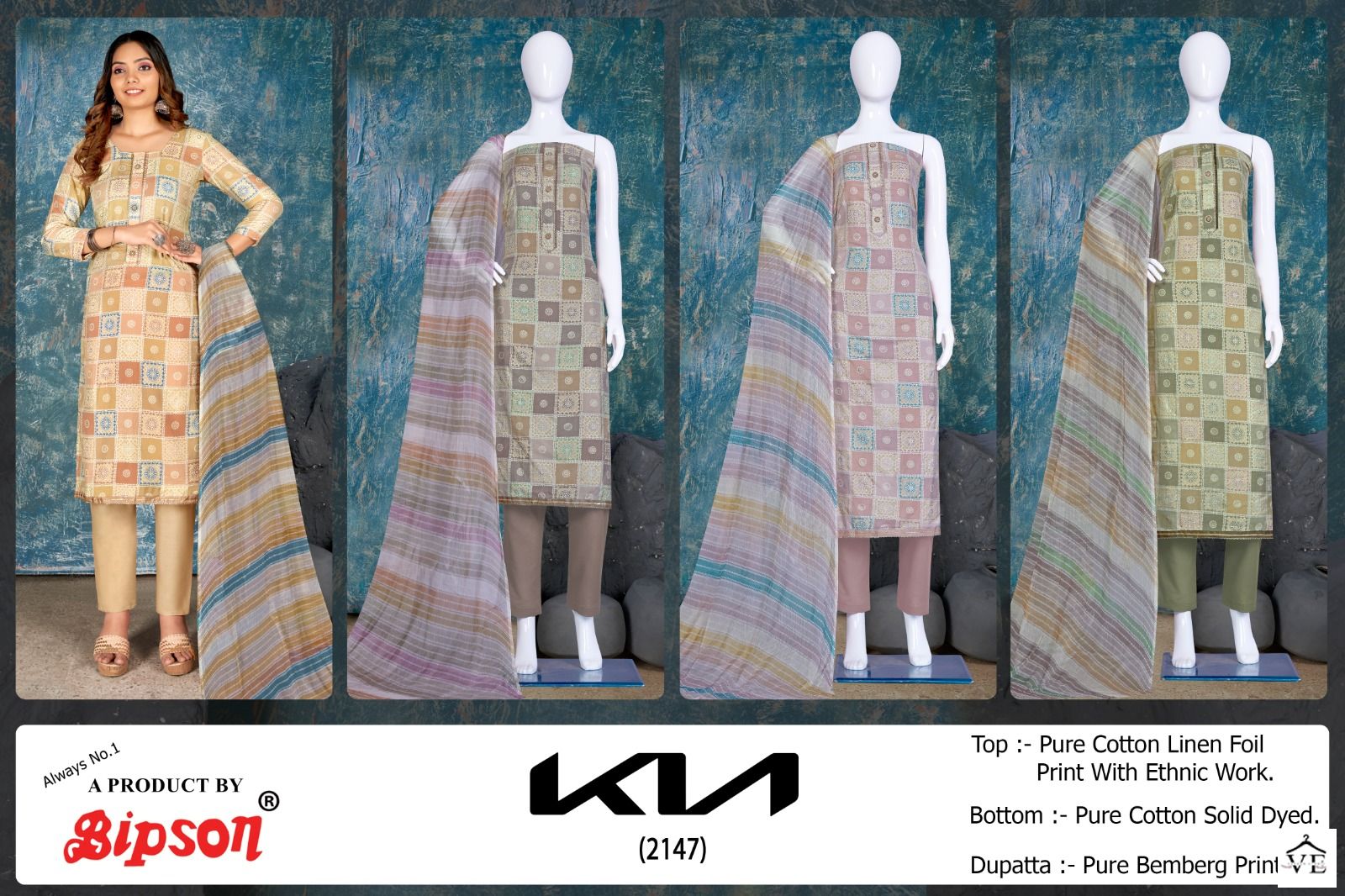 Bipson Kia 2147 Pure Linen Wholesale Salwar Suit Catalog 4 Pcs. We deal in Kurtis, Sarees, Dresses Materials, Leggings, and Designer Salwar Kameez.