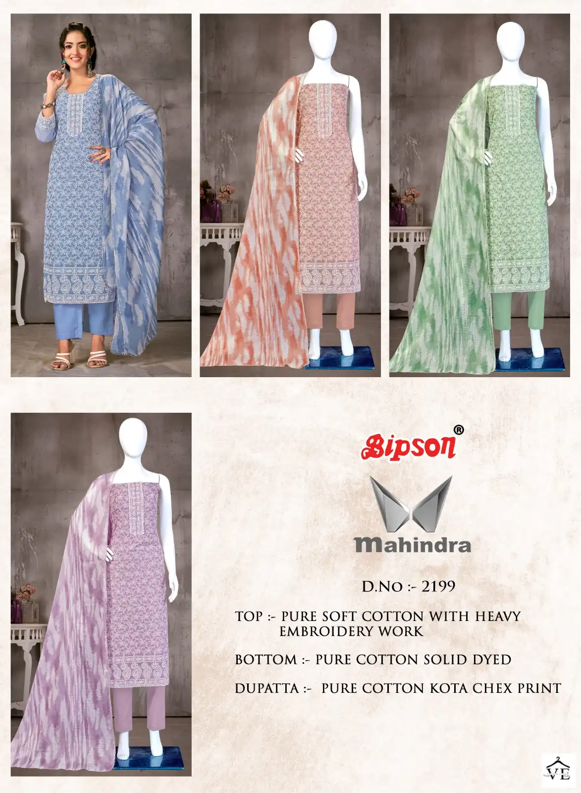 Bipson Mahindra 2199 Pure Soft Cotton Wholesale Salwar Suit Catalog 4 Pcs. We deal in Kurtis, Sarees, Dresses Materials, Leggings, and Designer Salwar Kameez.