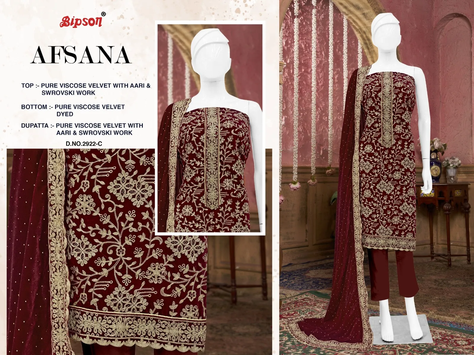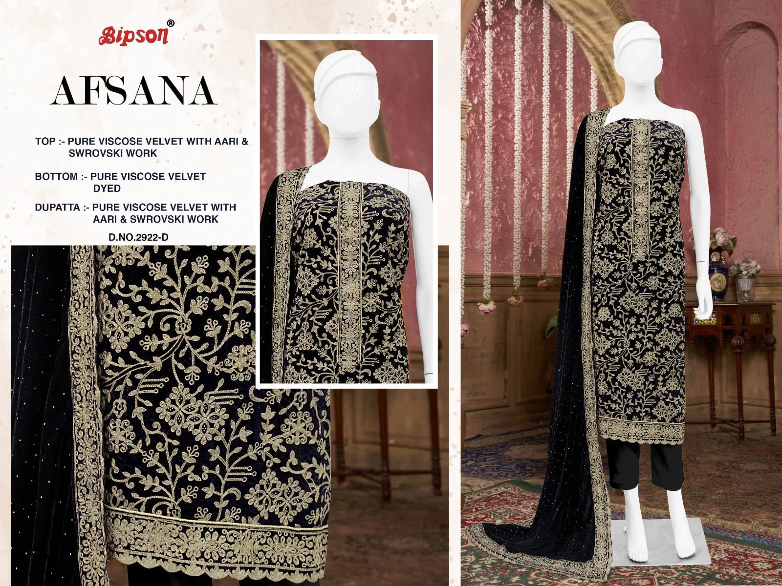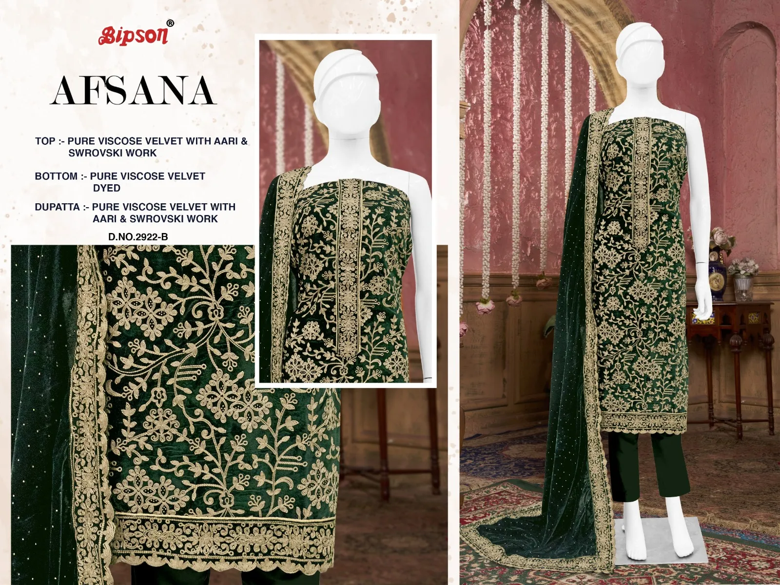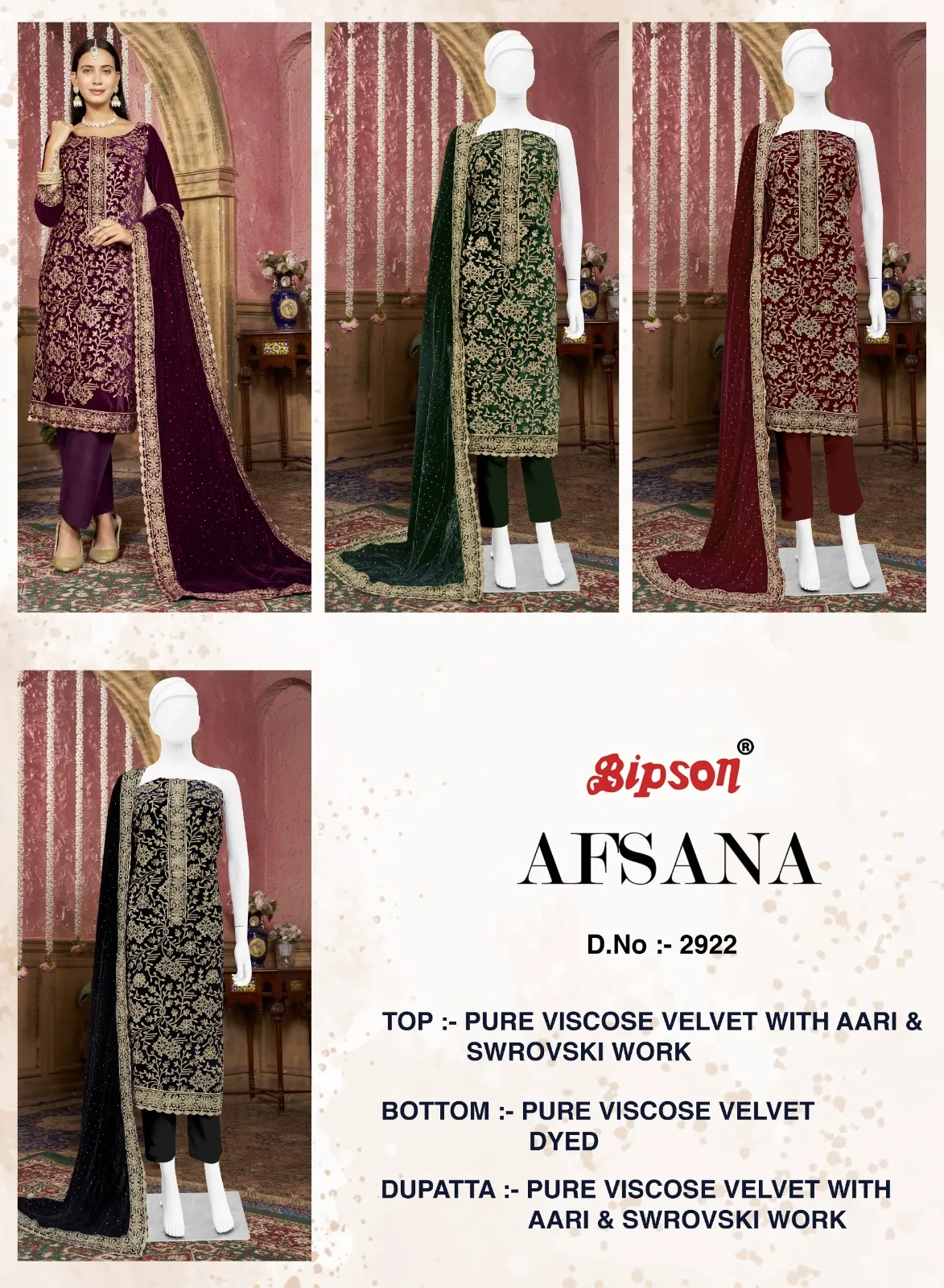 Bipson Prints Afsana 2922 Pure Viscose Velvet Wholesale Winter Collection