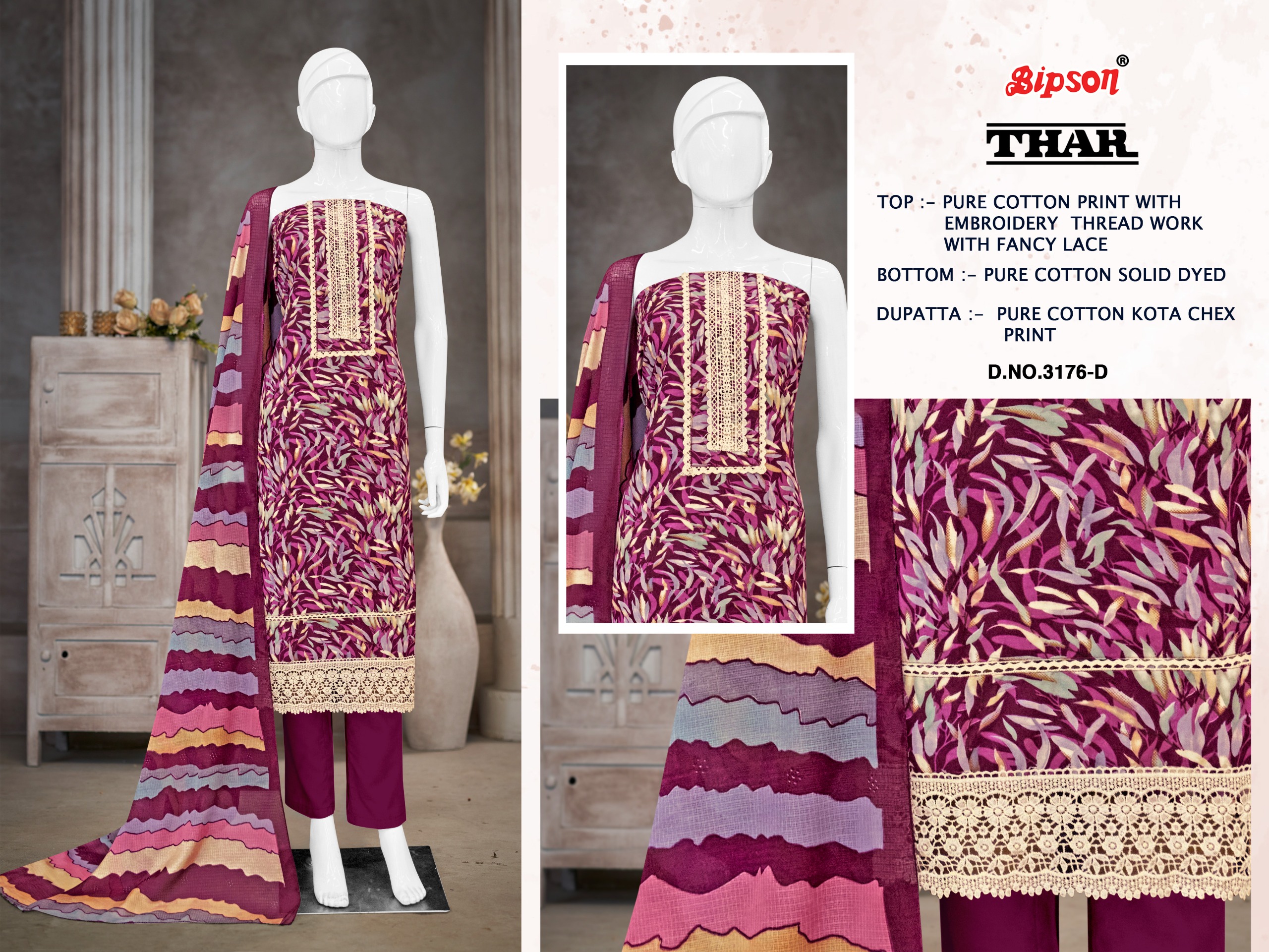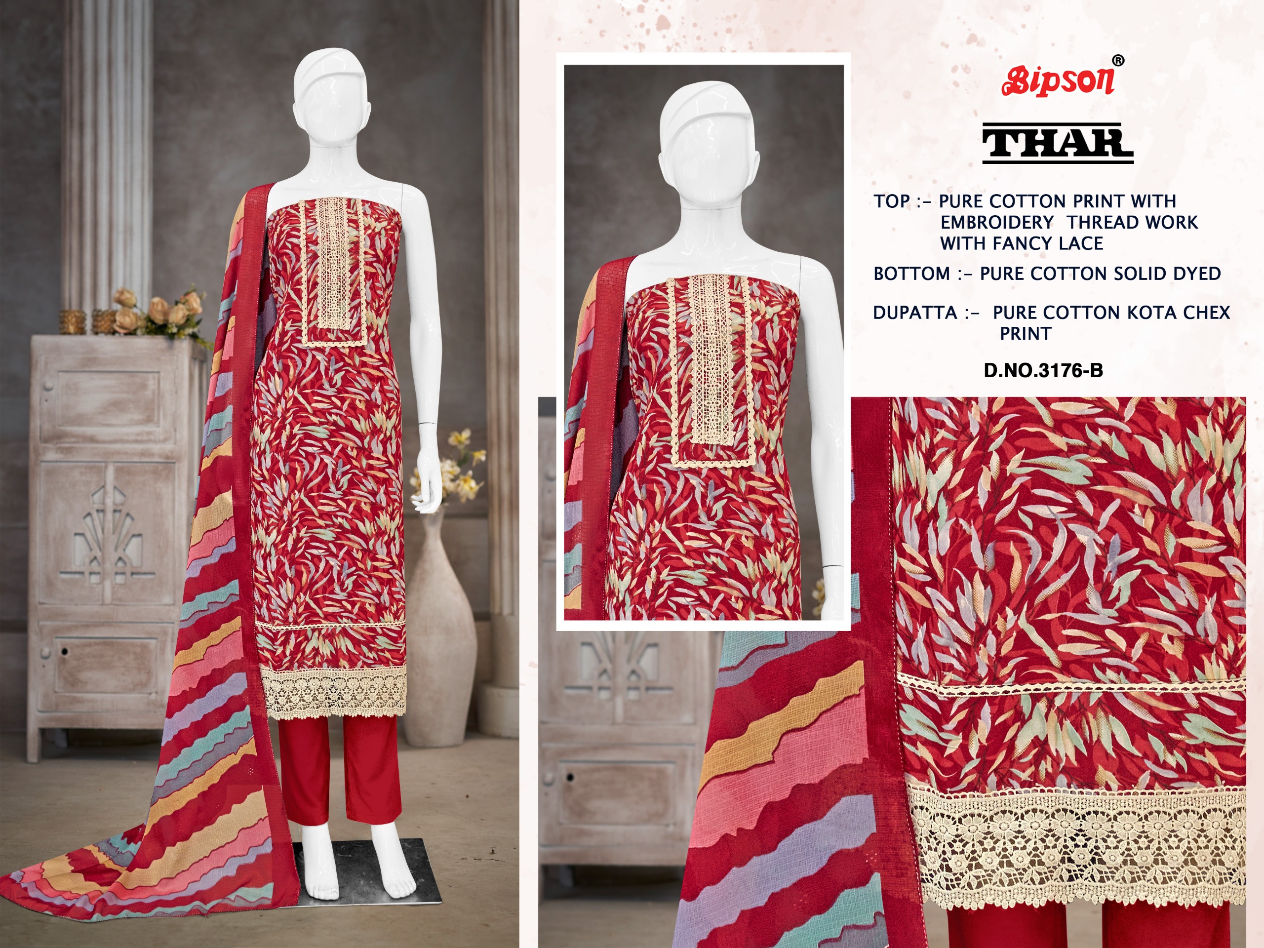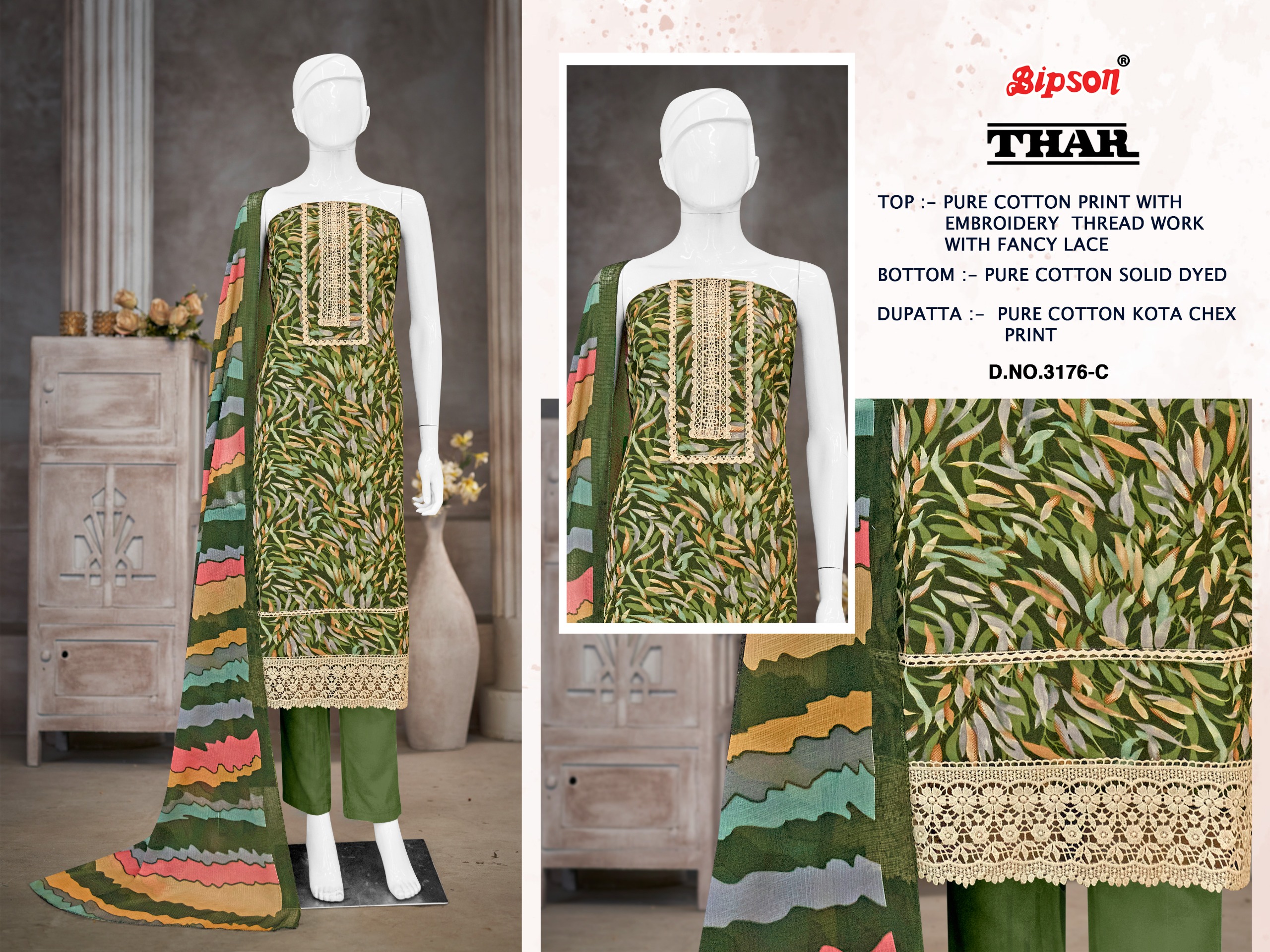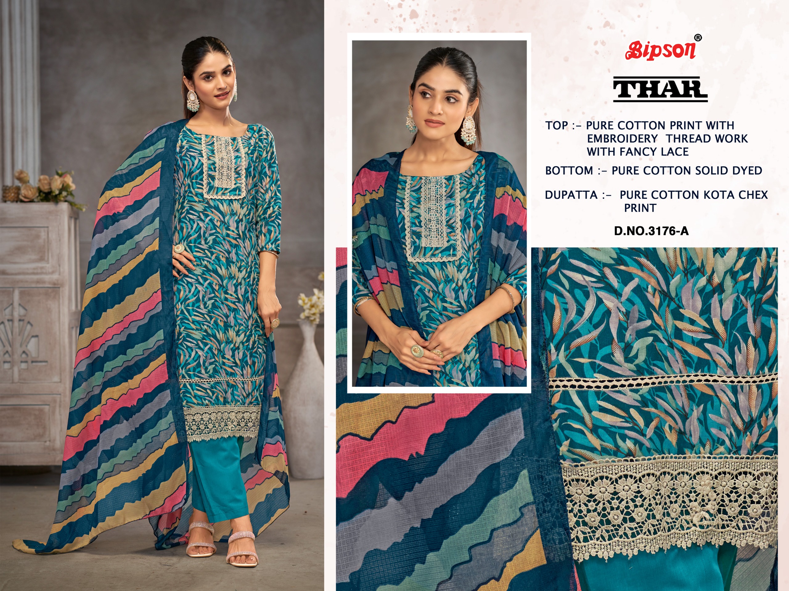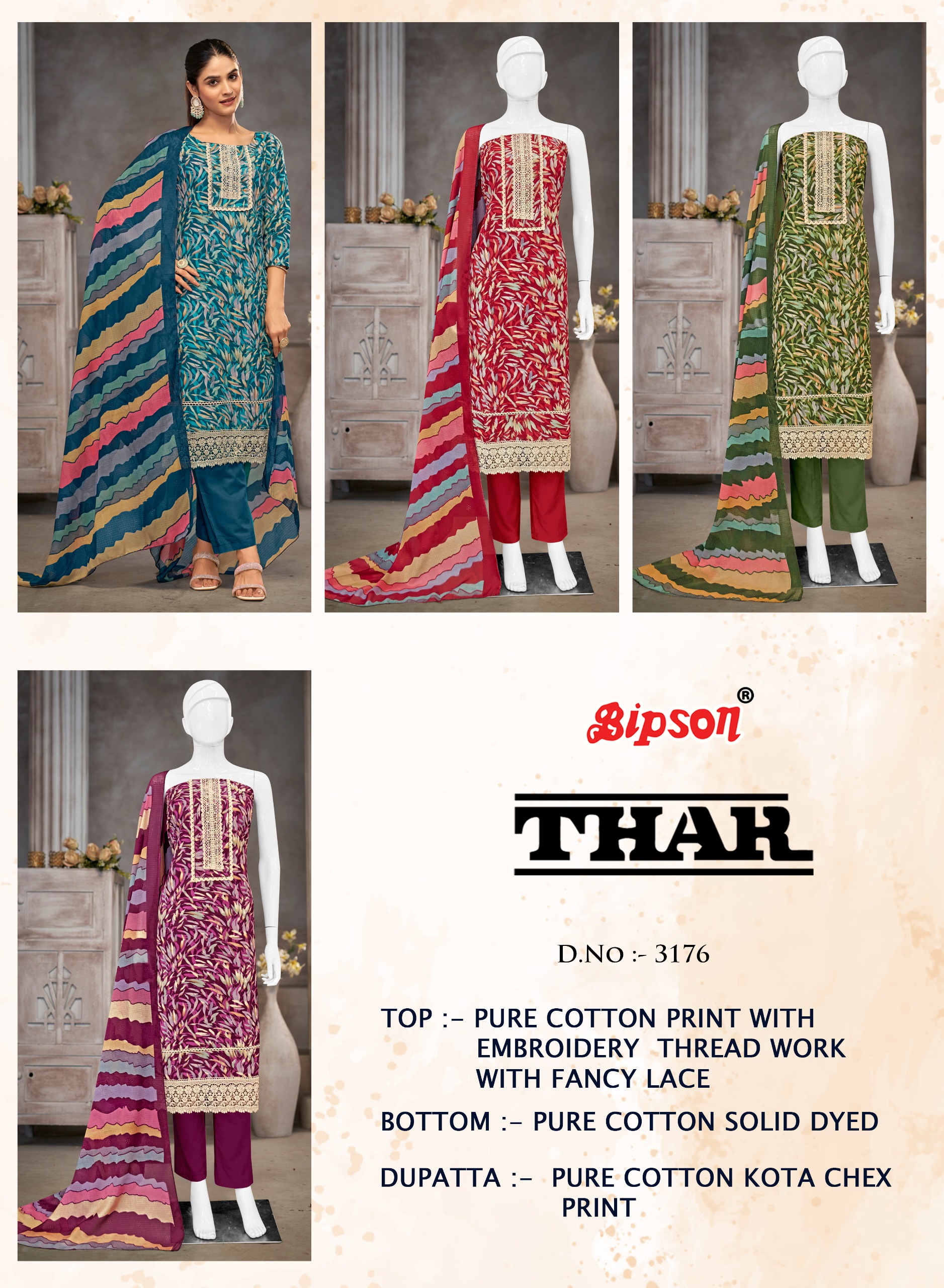 BIPSON PRINTS THAR 3176 Pure Cotton Suit with Embroidered Collection.
