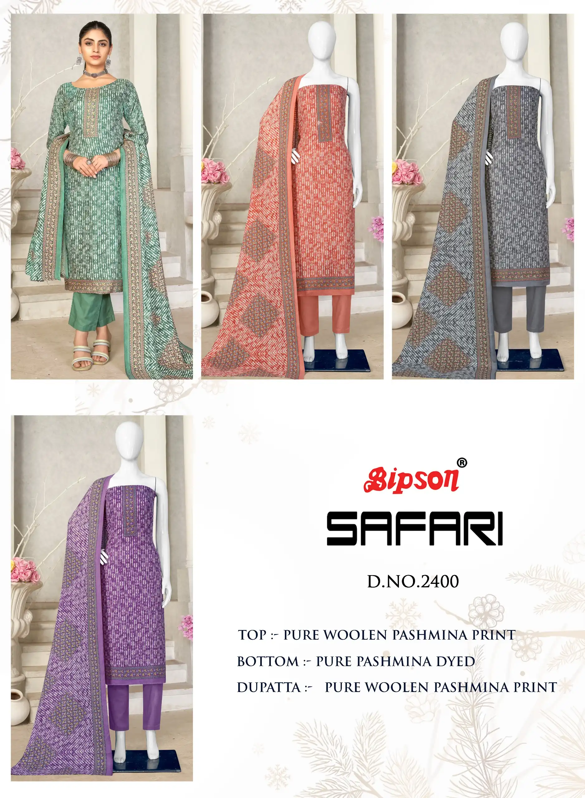 Buy Bipson Safari – 2400 Pure Woollen Safari Pashmina Wholesale Winter Wear Suits Catalog from Surat’s biggest Wholesaler Vardan Ethnic.
