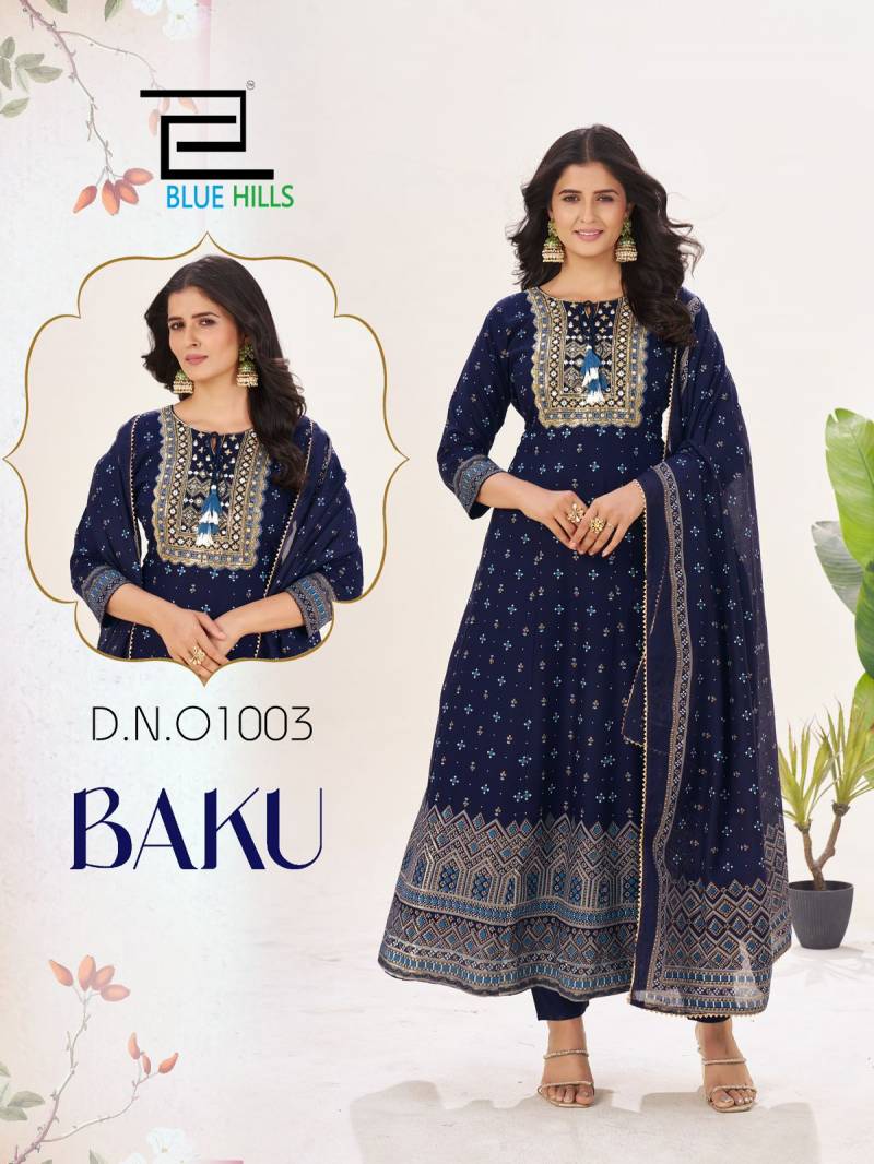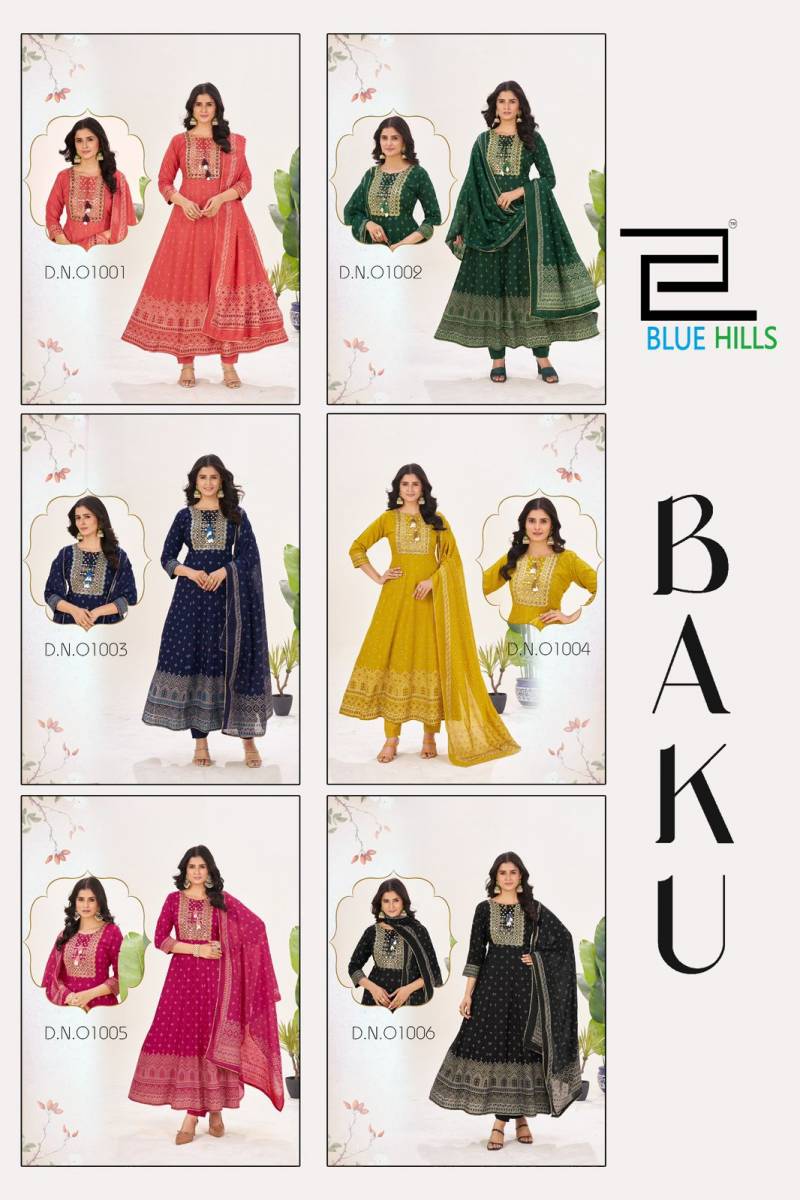 Buy Blue Hills Baku embroidered rayon Anarkali Kurti sets online at a wholesale rate.