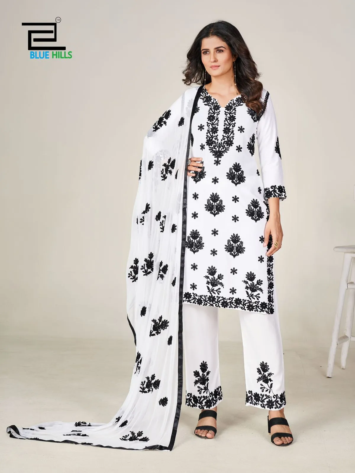 Blue Hills Black N White Vol 7 Rayon Wholesale Readymade Salwar Suit Kurtis Collection