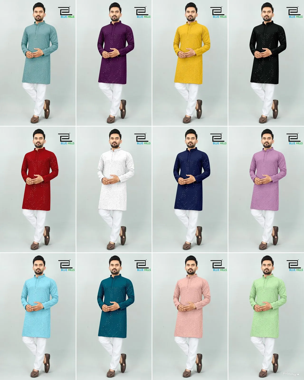 Blue Hills Desi Boyz 14 kg Heavy Rayon Chikan work Wholesale Kurta with Pajama Collection