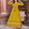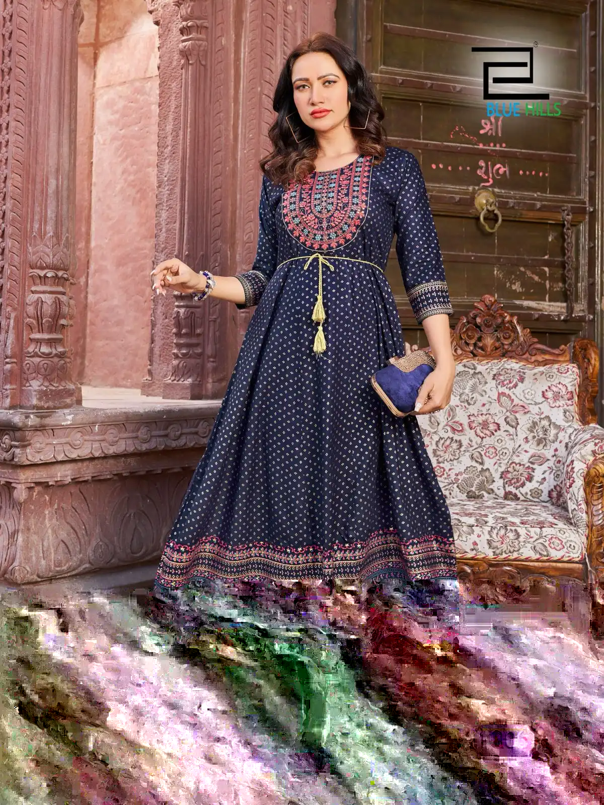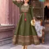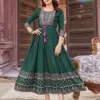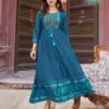 Gown: Crafted from luxurious Rayon 14 Kg fabric, this Anarkali Concept Gown boasts a beautiful foil print design that adds a touch of glamour to your look. The flattering silhouette and exquisite detailing make it perfect for special occasions and festive celebrations.